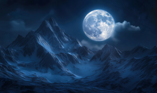 Lunar Dreams – Self-adhesive digital wallpaper with full moon & mountain silhouettes