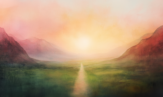 Sunpath – Digital mural with sunrise in soft gold and rose tones