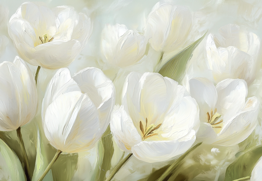 Blanche de Jardin – Self-adhesive wallpaper with white tulips and quiet elegance