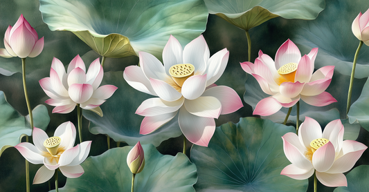 Lotus Garden - Self-adhesive digital wallpaper with stylized lotus blossom
