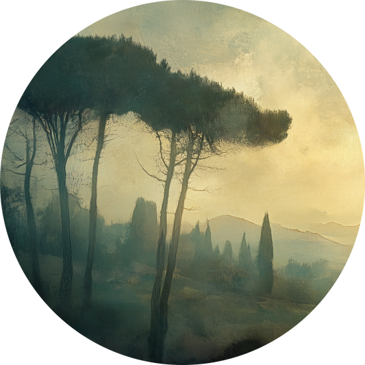 Tuscany Misty Dream – Round wall sticker with a misty landscape
