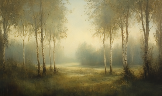 Silent Expanse – Self-adhesive digital wallpaper in Japandi style with boat & fog