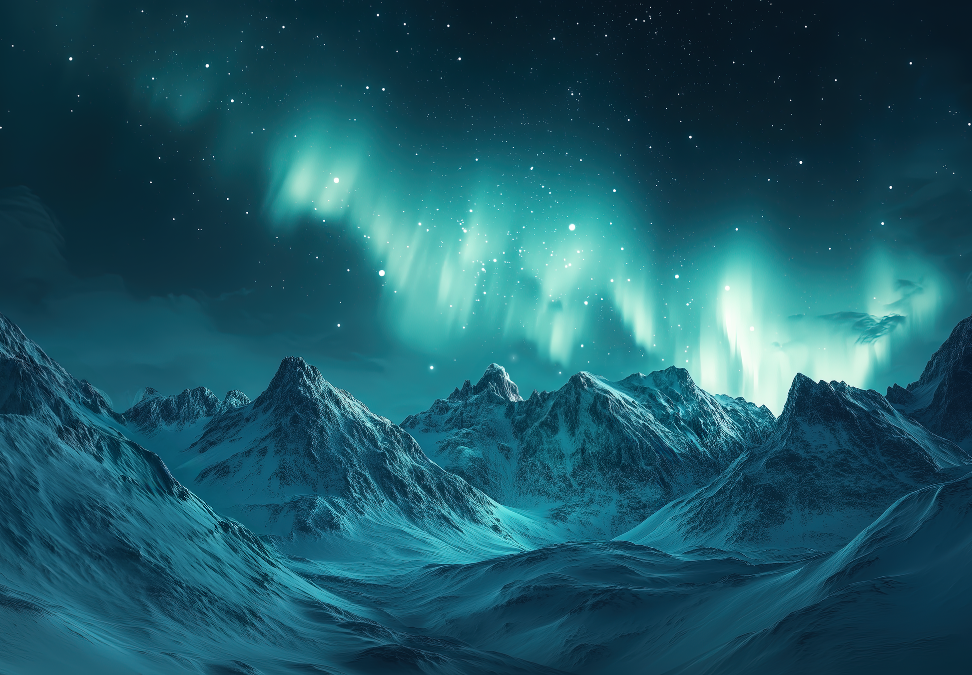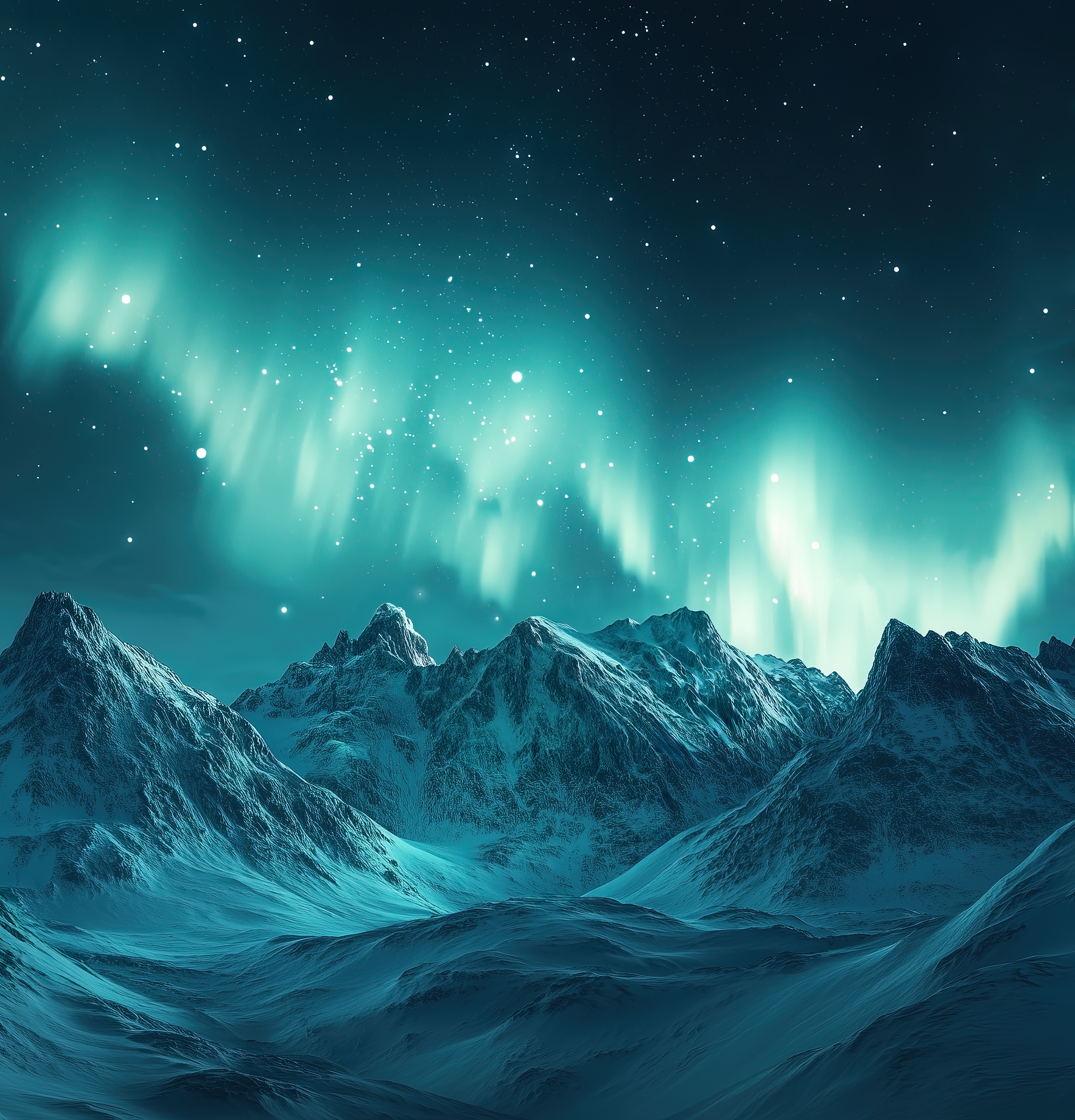 Aurora Silence is a self-adhesive digital wallpaper that captures the magic of Arctic nights. A snowy mountain landscape lies beneath intense northern lights – bathed in cool blue, night gray, and fluorescent green. The contrast between the clear tranquility of the mountains and the luminous sky creates a meditative tension between silence and cosmic energy. The design is deep, atmospheric, and yet modernly reduced. Aurora Silence is ideal for minimalist interior concepts with a focus on light, darkness, and visual expanse – whether as an accent in the bedroom, a tranquil statement in the studio, a backdrop in the spa, or a highlight in the living room. Thanks to the self-adhesive backing, the wallpaper can be applied quickly and cleanly without paste.