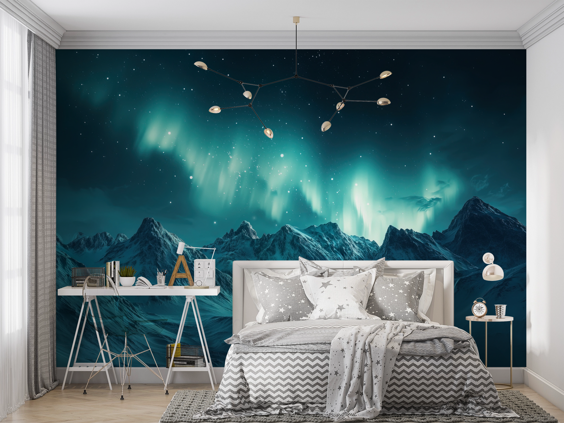 • Format: Self-adhesive digital wallpaper with aurora borealis motif