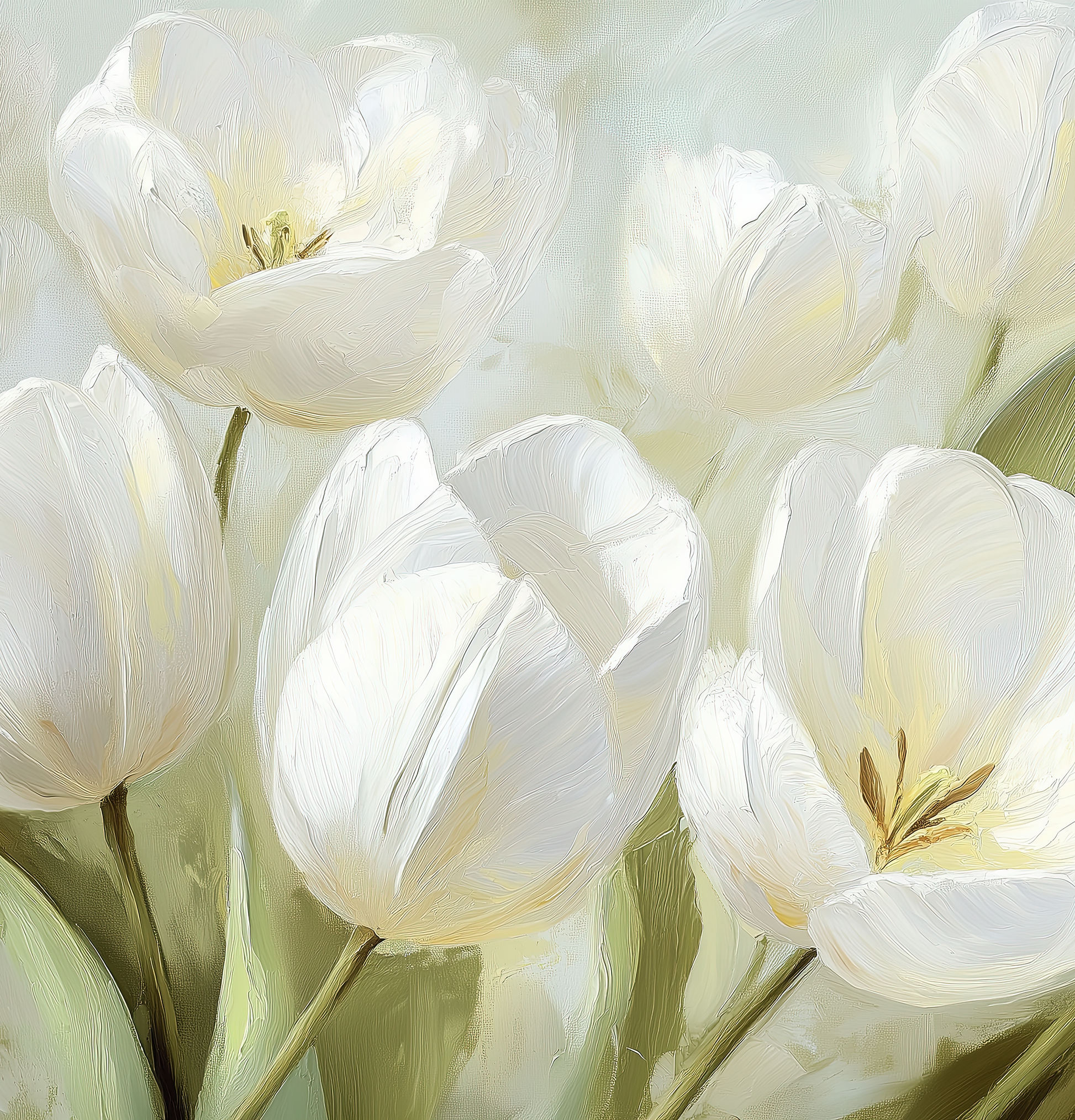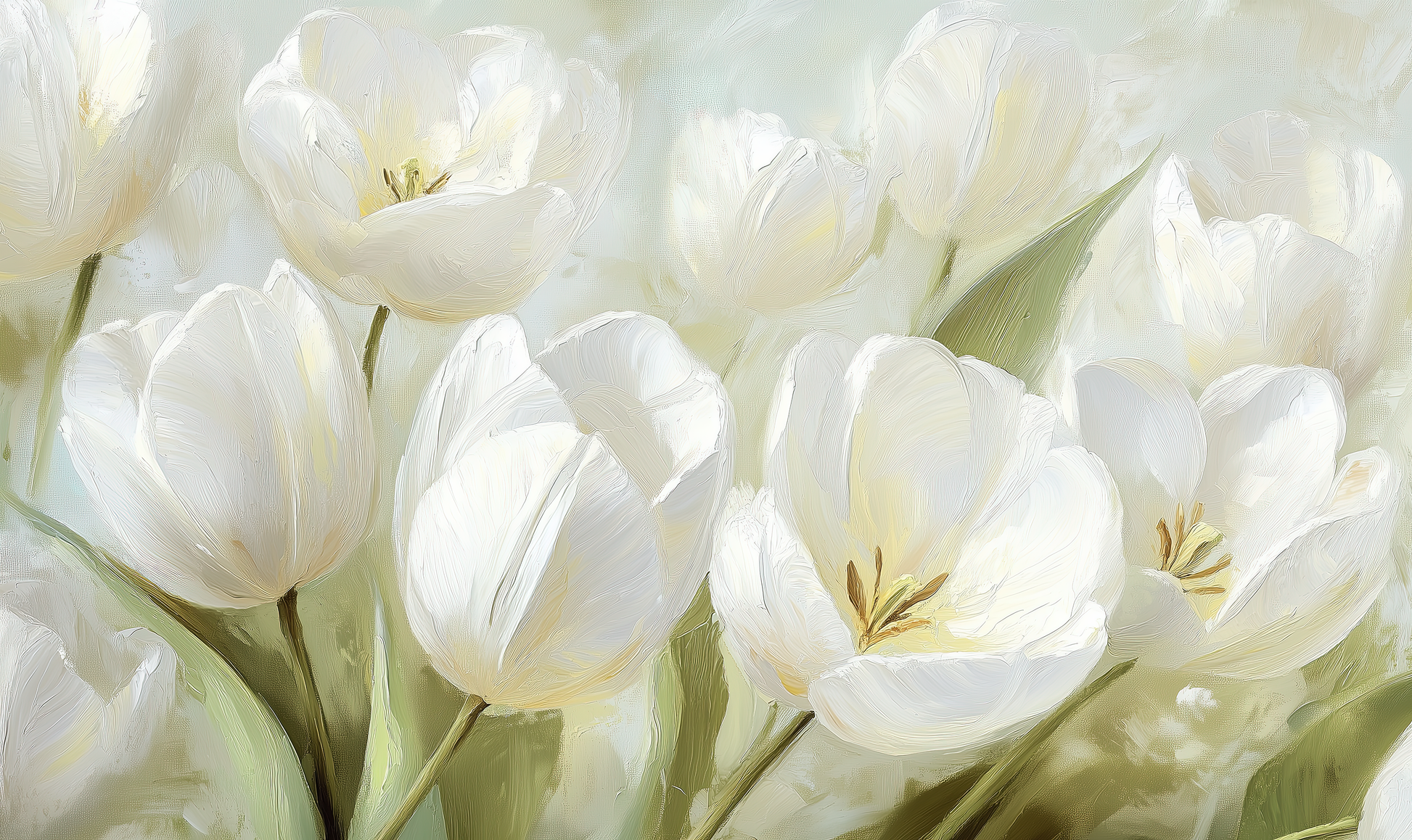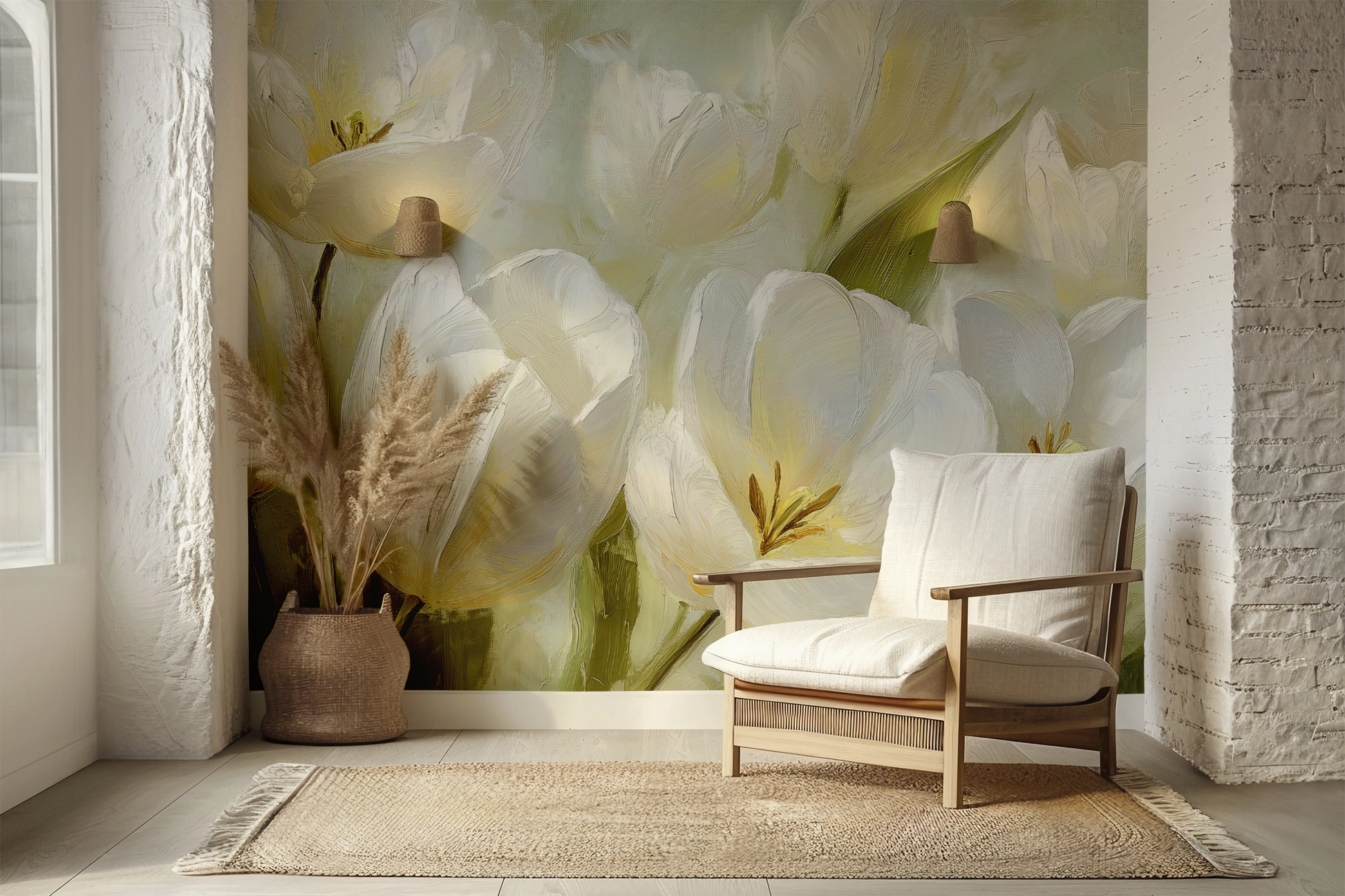 Blanche de Jardin – Self-adhesive wallpaper with white tulips and quiet elegance