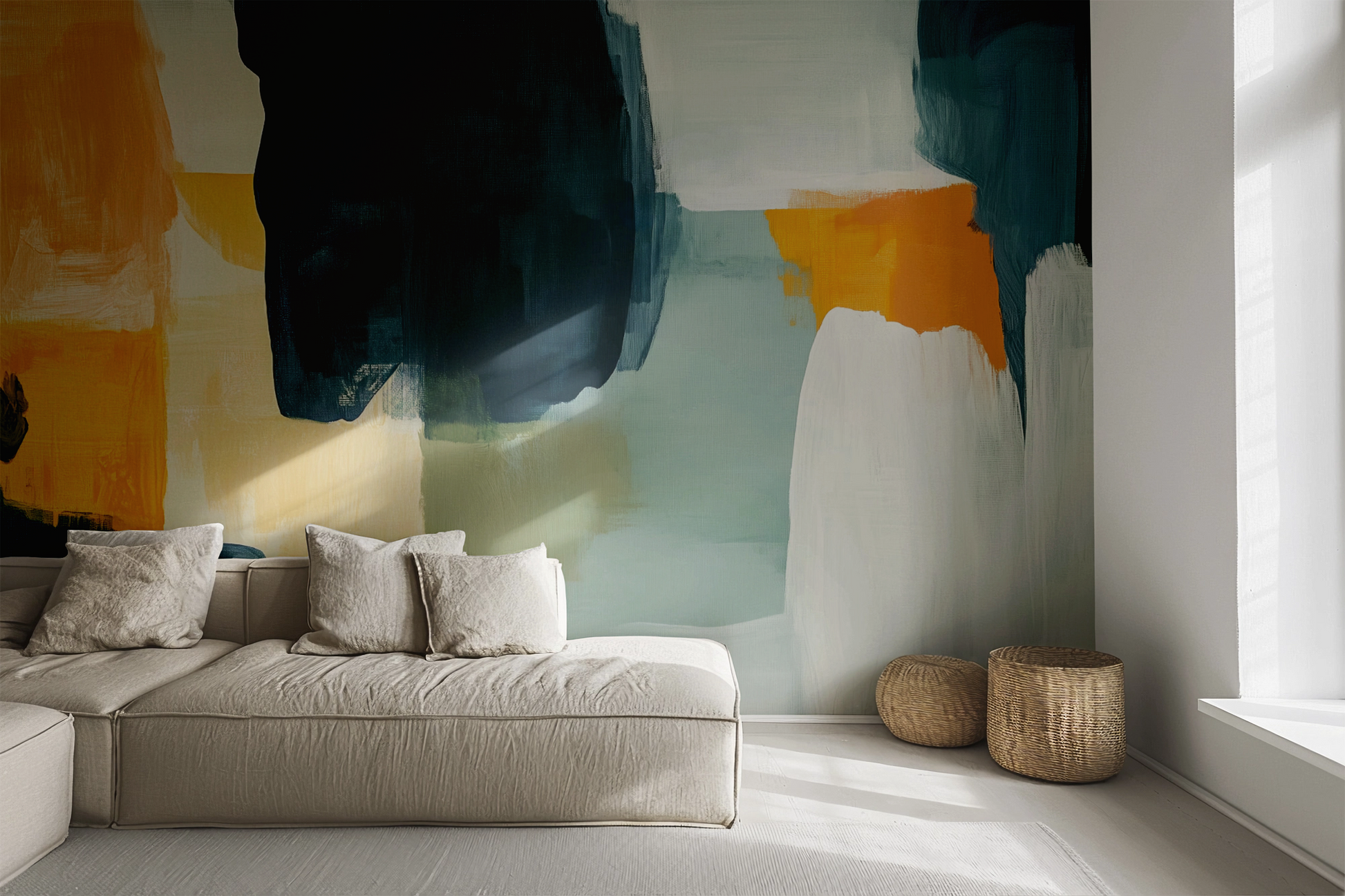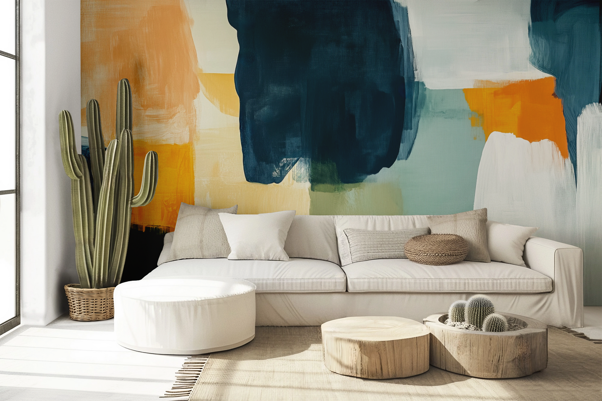 Caldo isn't a classic wallpaper—it's an atmospheric statement. A powerful composition of earthy ochre tones, deep midnight blue, and vibrant orange accents creates a visual tension between calm and expression. The abstract design appears like an open work of art—intuitive, sensual, and full of depth. Ideal for modern interiors with architectural clarity, creative workspaces, or living concepts with character. Caldo brings warmth, artistic freedom, and a stylish presence to any wall. Thanks to the self-adhesive backing, the design can be applied quickly and cleanly—for anyone who wants to bring art into everyday life.