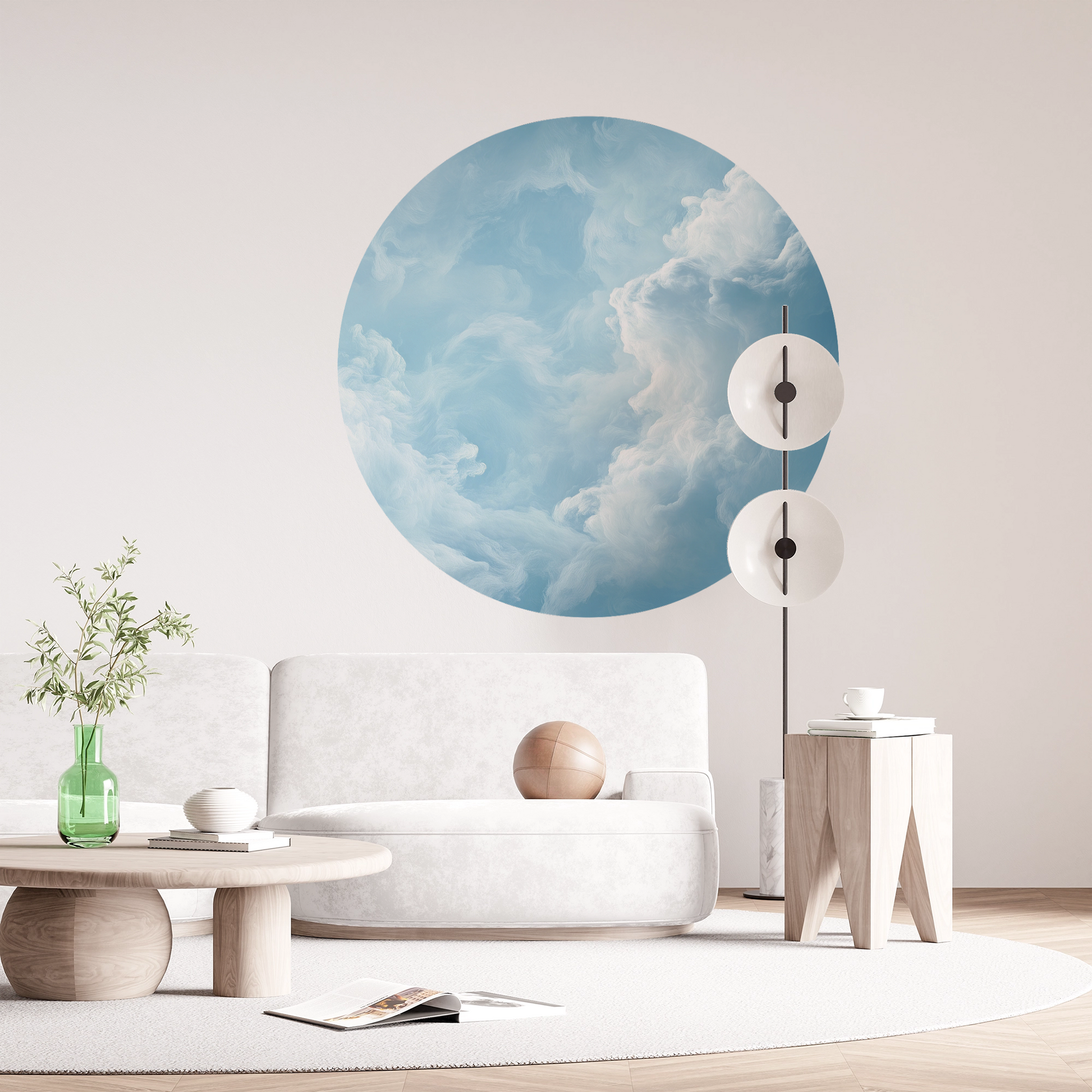 Cloud Bloom – Round wall sticker with pastel-colored cloud composition
