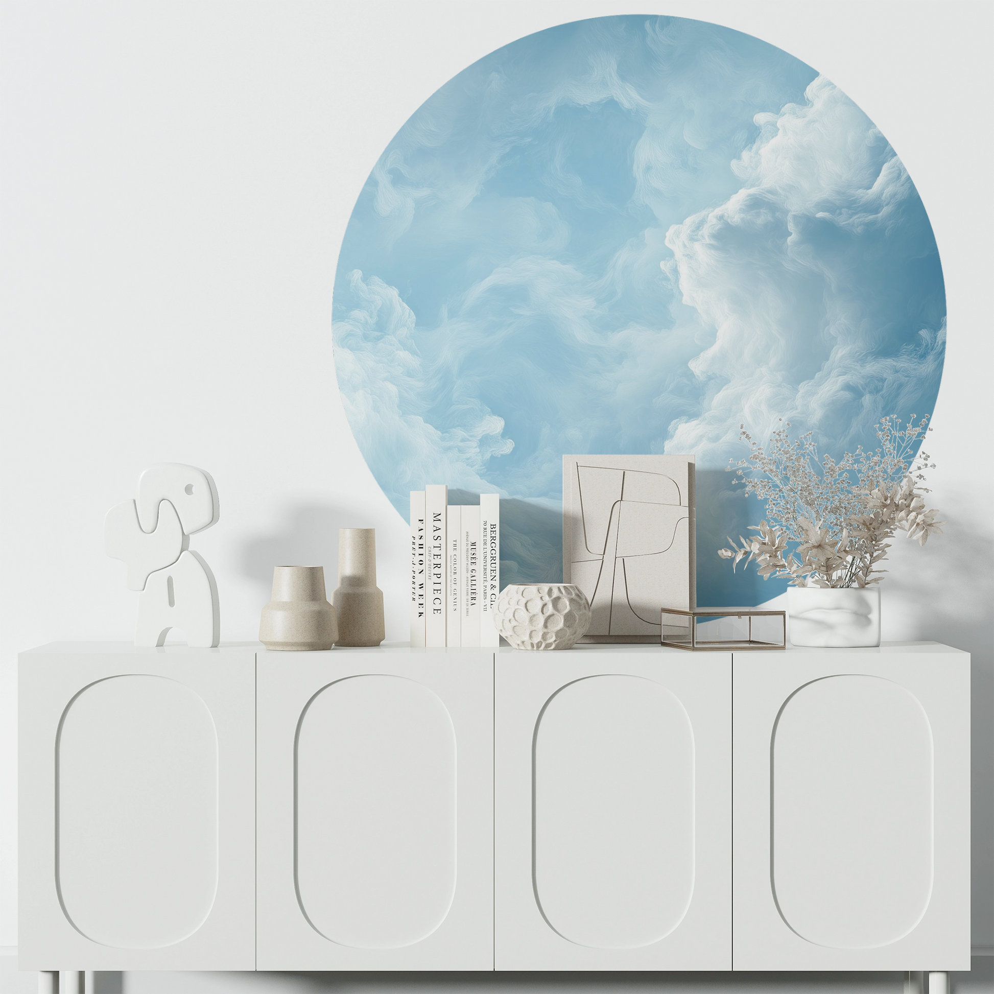 Cloud Bloom is a visual ode to weightlessness – delicate cloud formations unfold like heavenly blossoms in a pastel blue sky. The painterly texture appears almost brush-painted, lending the scene a poetic calm and atmospheric depth. This design brings stillness, light, and a sense of boundless expanse to the wall – ideal for rooms that should radiate lightness, softness, and aesthetic clarity. Perfect for bedrooms, hallways, creative retreats, or modern relaxation areas.