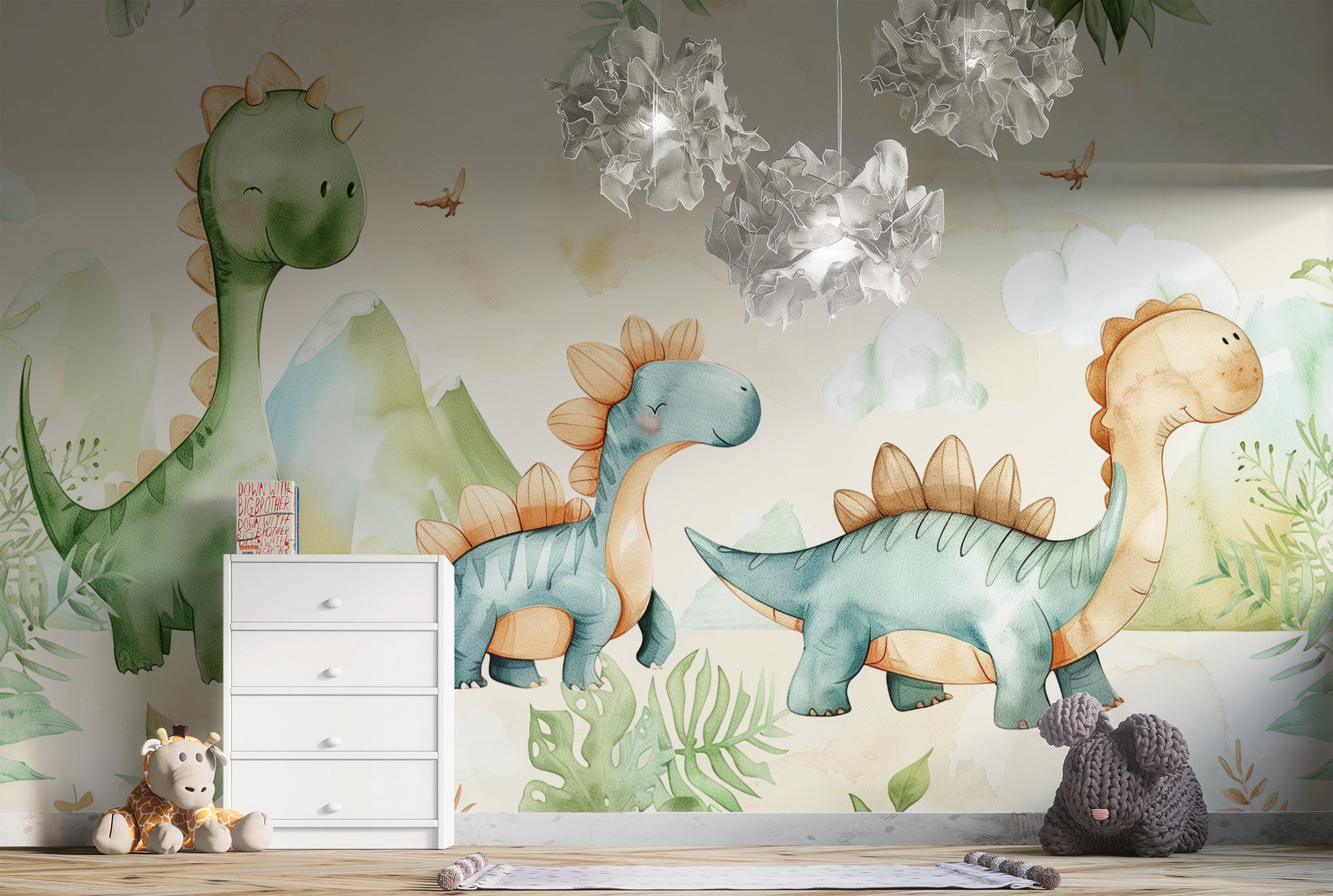 Dinosaur wallpaper for children's rooms – self-adhesive wallpaper | Wall of Nova
