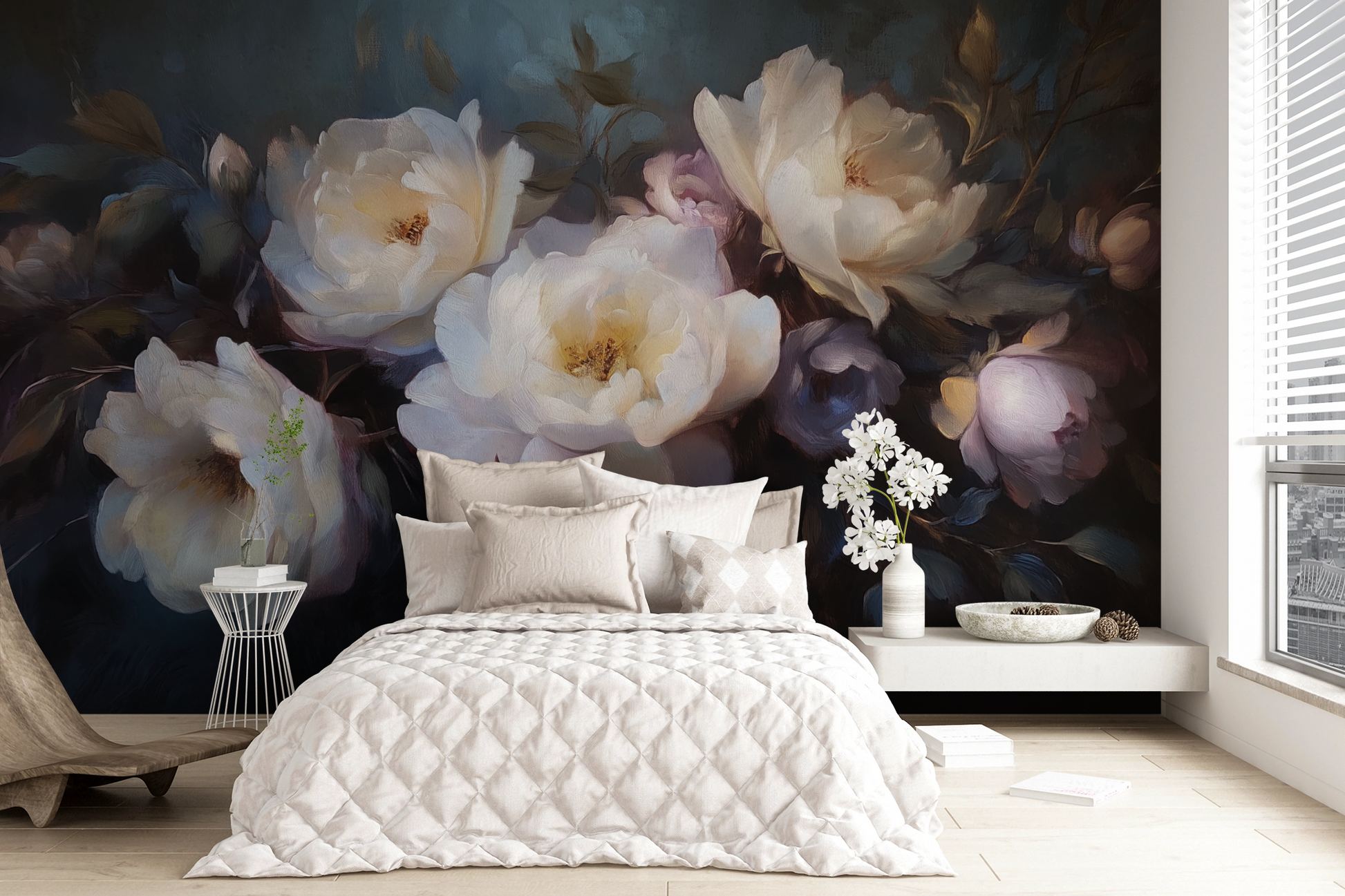 Velvet Bloom - Self-adhesive digital wallpaper with dark floral motif