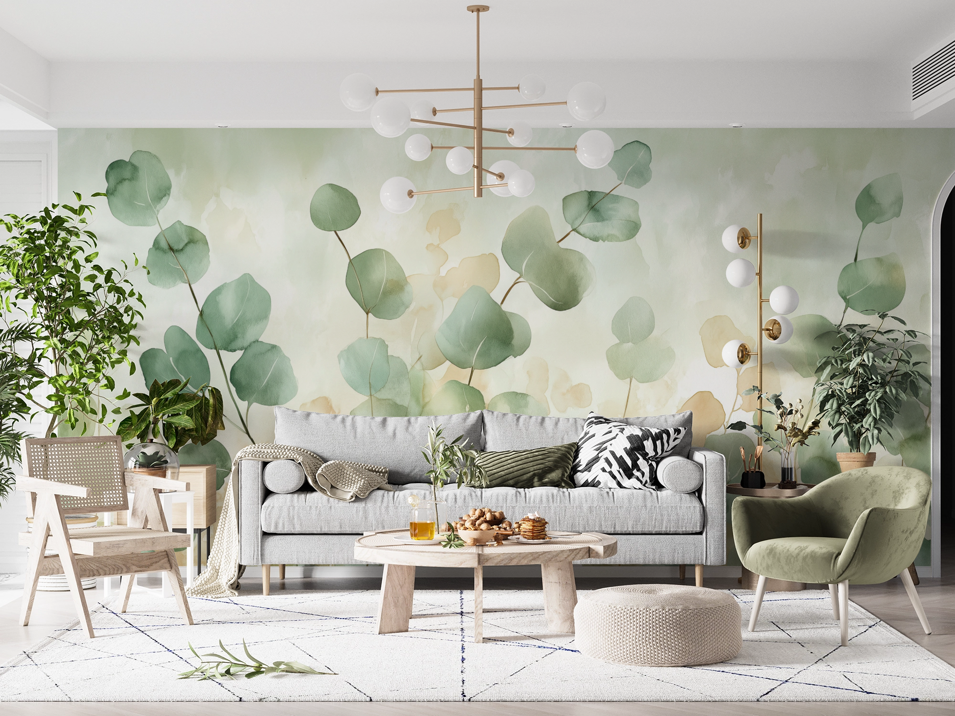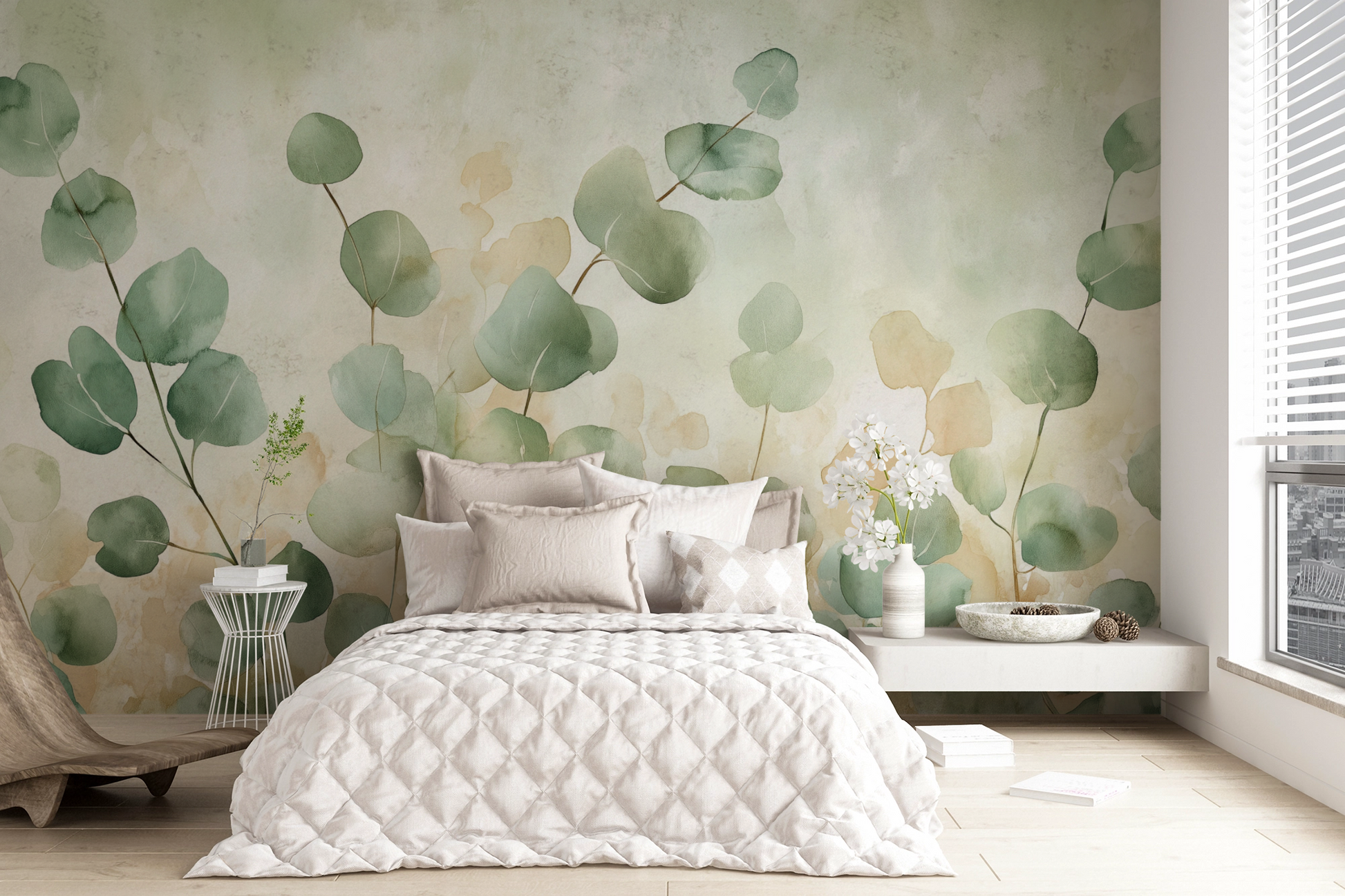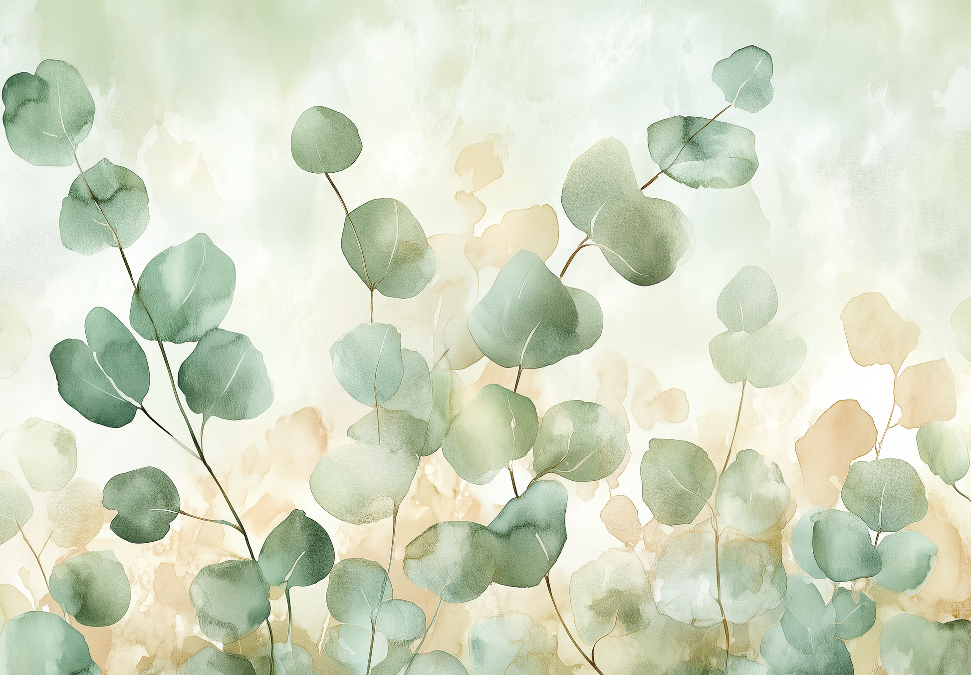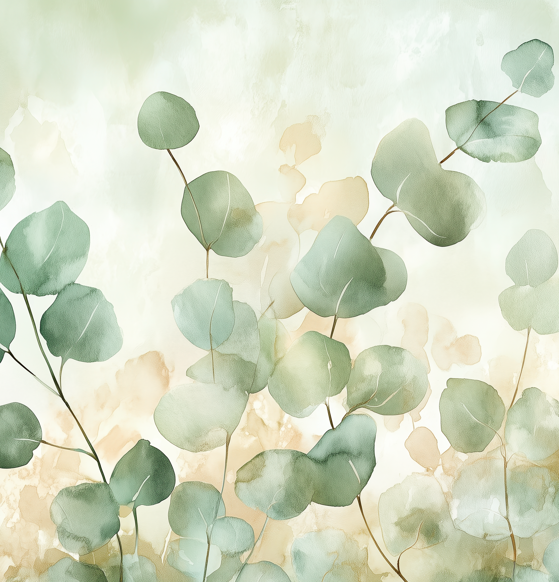 With Eucalyptus Breeze, you bring the pure lightness of nature into your home. Delicate eucalyptus branches in soft green tones dance against a light, harmonious background, lending any room a friendly, calming radiance. The fine watercolor texture creates depth without being obtrusive, ensuring an aesthetic balance between naturalness and modern elegance. This digital wall mural blends effortlessly into contemporary interior design concepts—ideal for spaces that should radiate openness, warmth, and stylish lightness. Eucalyptus Breeze is the perfect choice for anyone seeking a homey atmosphere full of charm and naturalness while valuing understated, high-quality design.