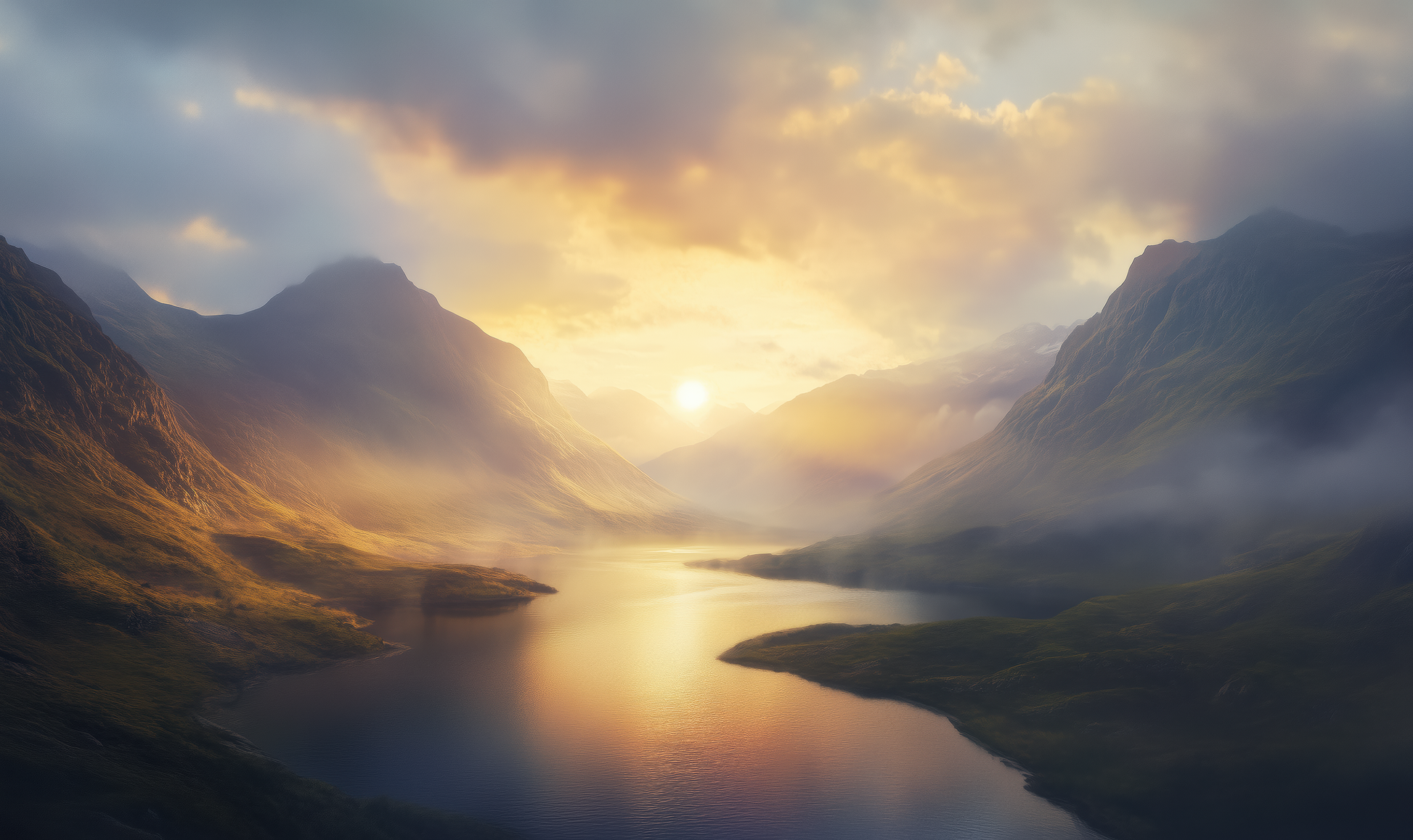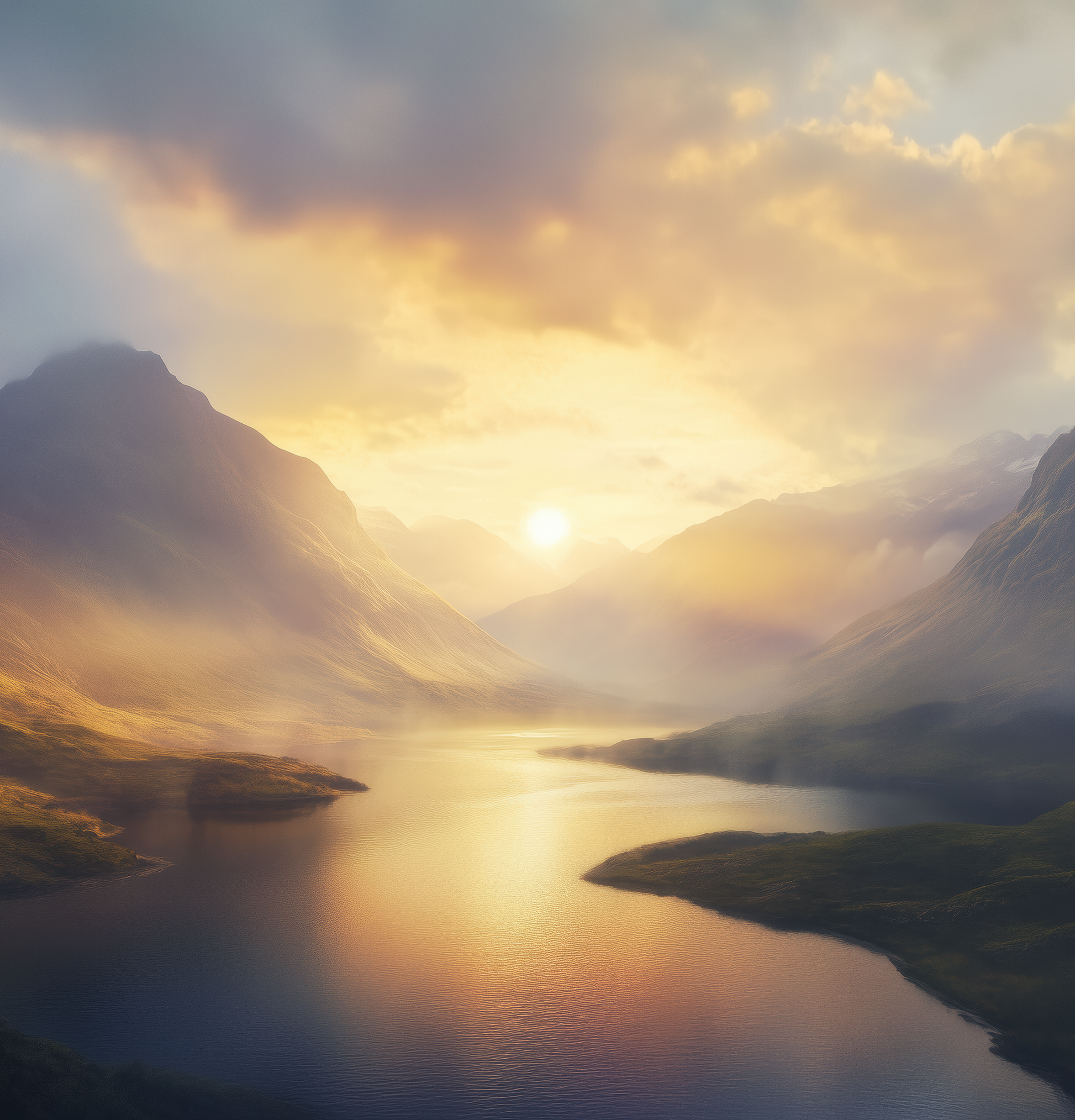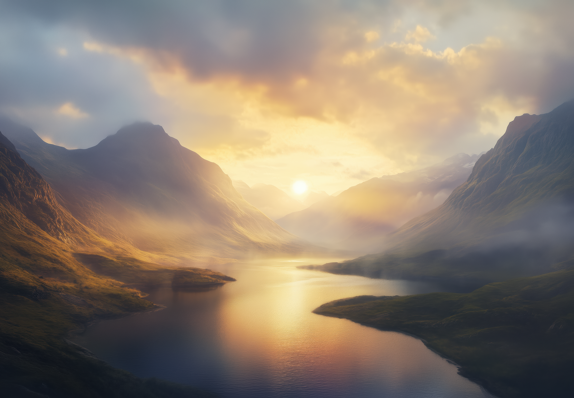Golden Fjord is a self-adhesive digital wallpaper that brings tranquility, depth, and natural expanse to any room. The panorama depicts a tranquil mountain lake in the warm evening light, surrounded by majestic mountains, gentle mist, and golden reflections on the water. The harmonious color scheme of soft blue, misty gray, and warm gold creates a meditative spatial effect—like a quiet moment amidst untouched nature. Golden Fjord is perfect for bedrooms, living rooms, reading areas, or spa zones where an atmosphere of serenity and grounding is desired. Thanks to the self-adhesive backing, the wallpaper can be applied easily, bubble-free, and without paste—for a calm, powerful interior design with a sense of depth.