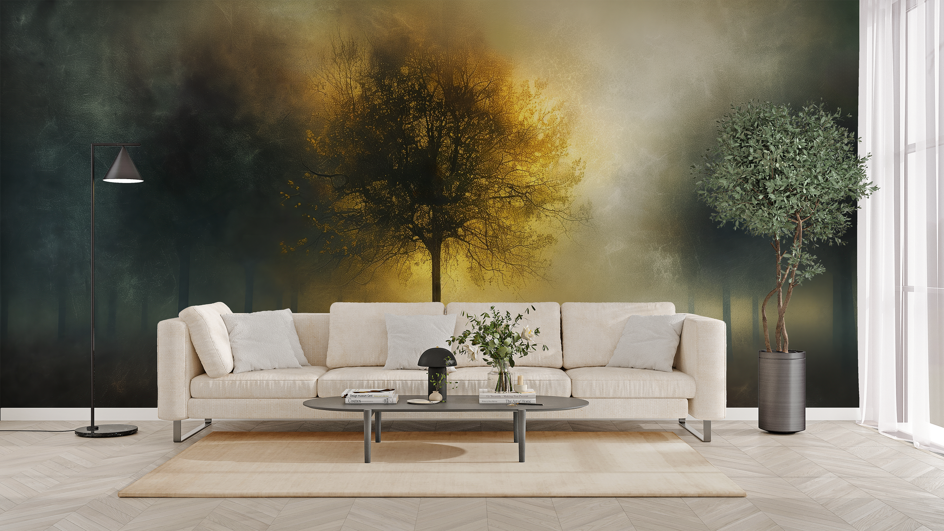 This design brings a meditative atmosphere to any room and invites you to pause, dream, and breathe deeply – ideal for living areas, oases of calm, or stylish work spaces.