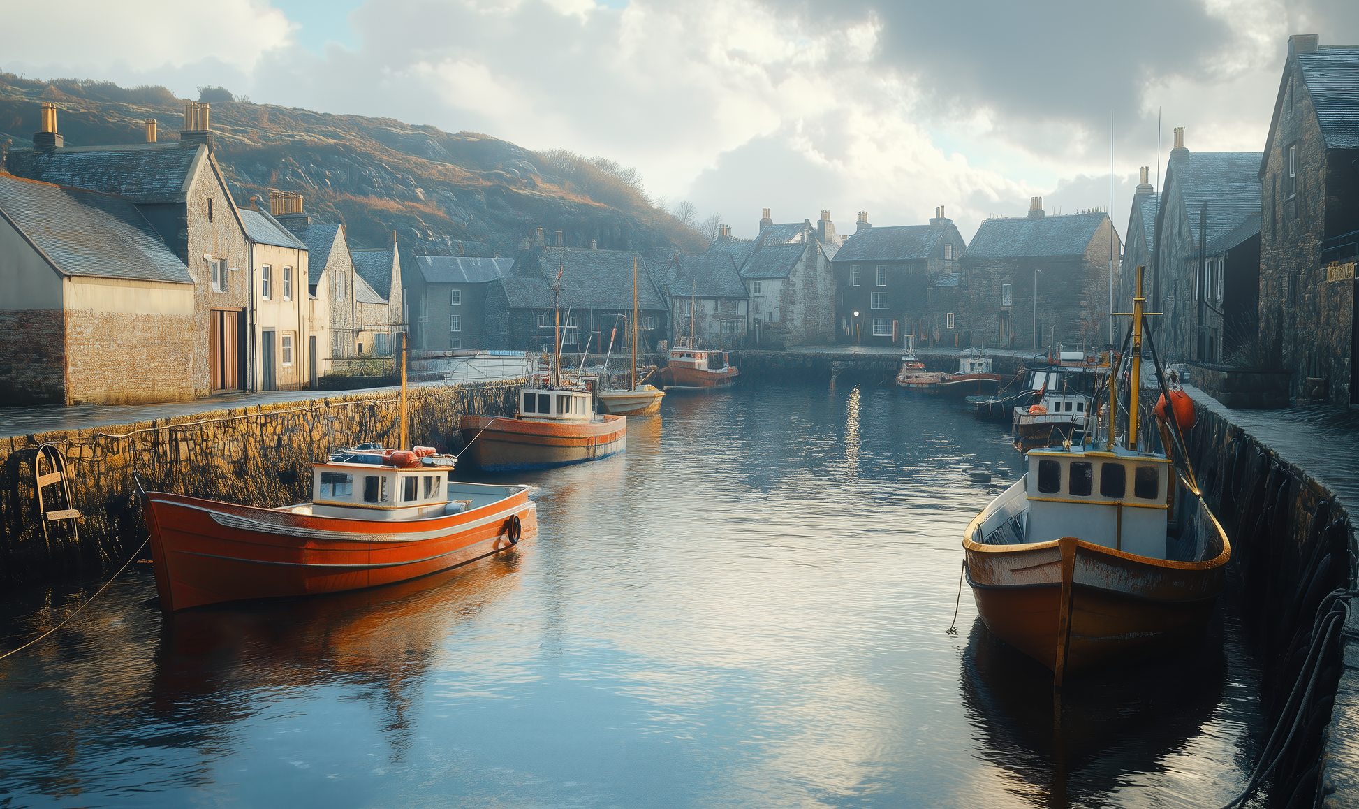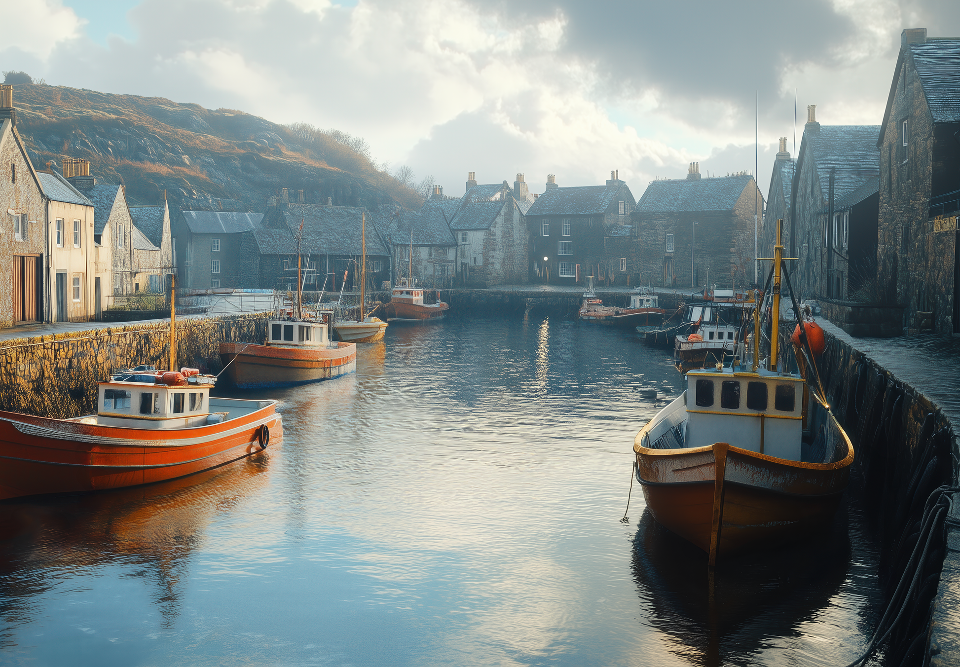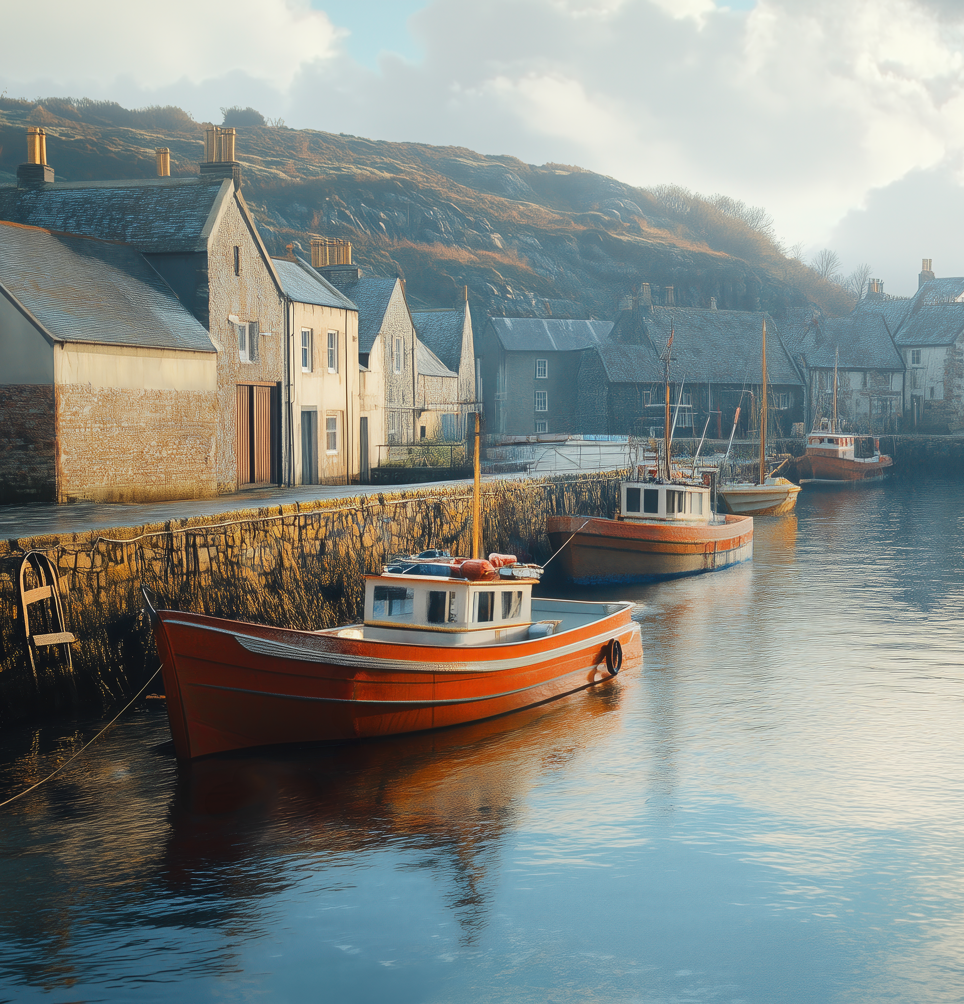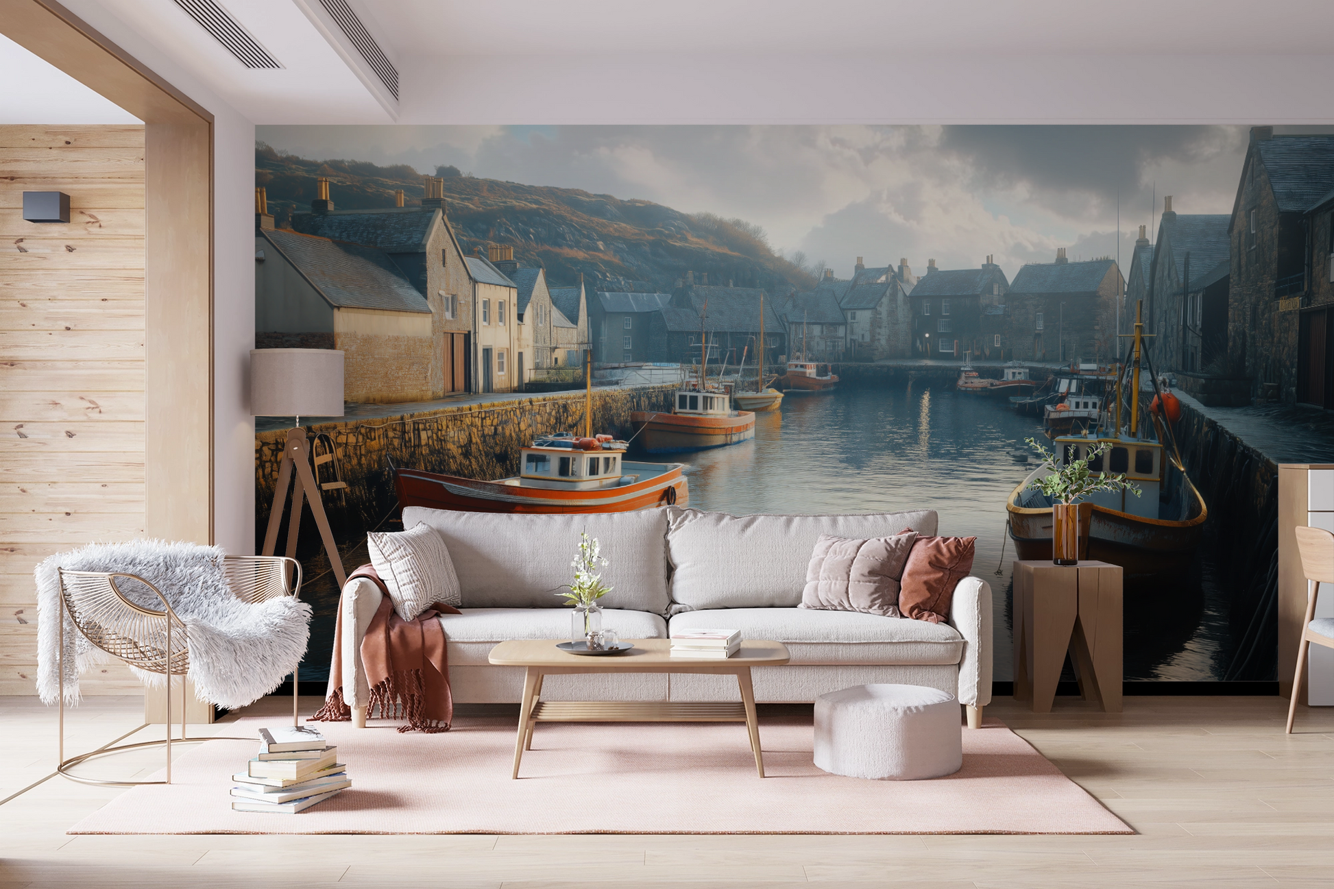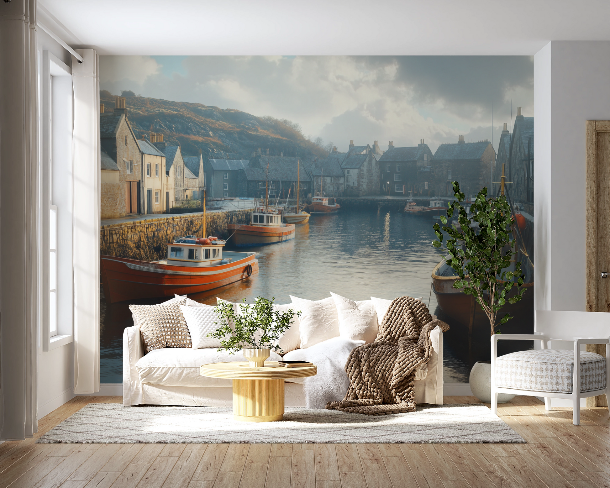 Harbour Haze is a self-adhesive digital wallpaper that captures the timeless charm of an old fishing port in a delicate watercolor look. Soft colors, hand-painted textures, and nautical details evoke salty air, weathered wooden planks, and tranquil days by the sea—a homage to life between water and wind. The design combines the aesthetics of cottagecore with coastal living , bringing a soothing blend of nostalgia, closeness to nature, and serenity to the wall. Ideal for "Modern Coastal" or "Seaside Cottage"-style interiors, it also makes a stylish accent in vintage lofts, urban retreats, or vacation homes.