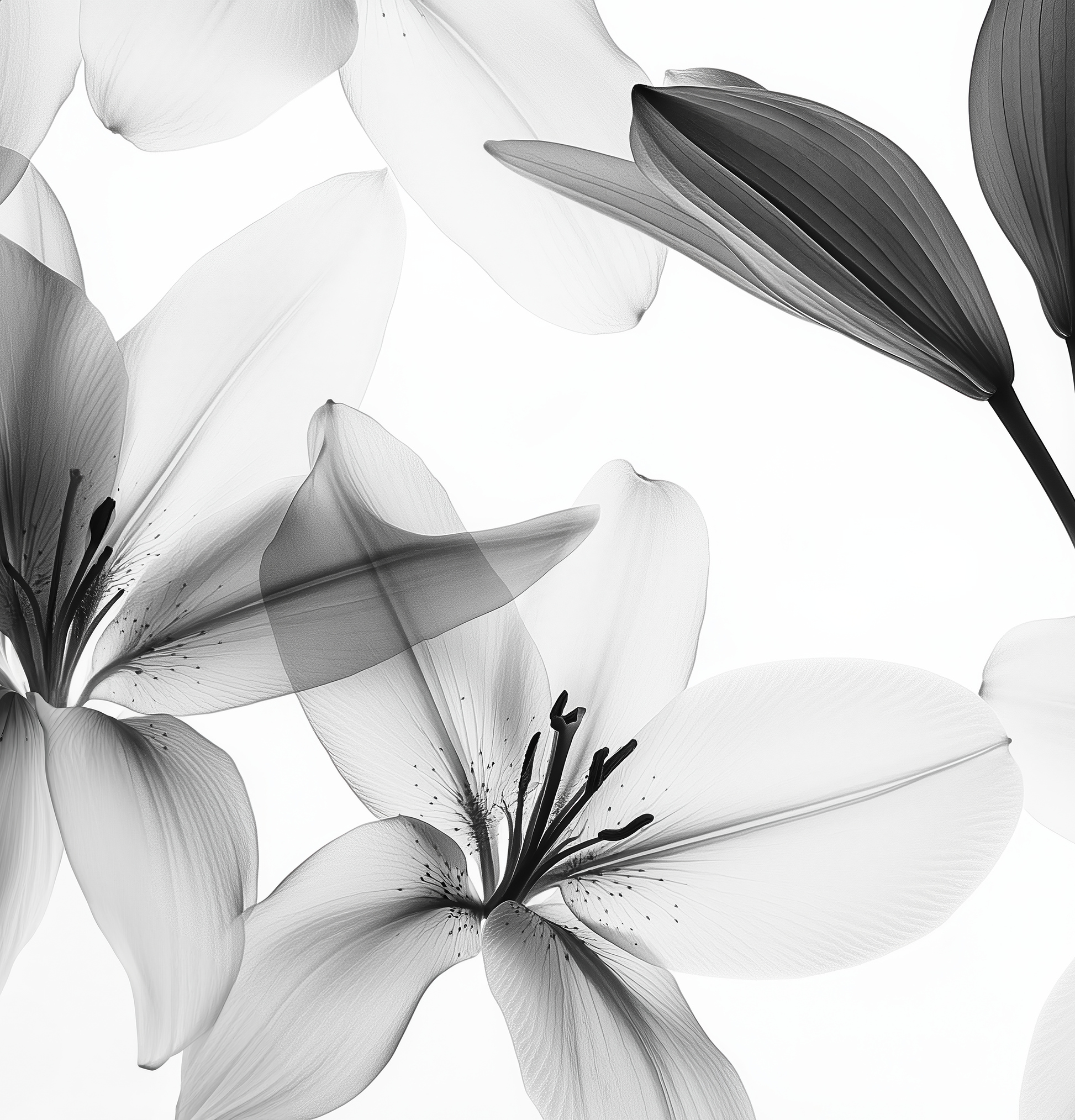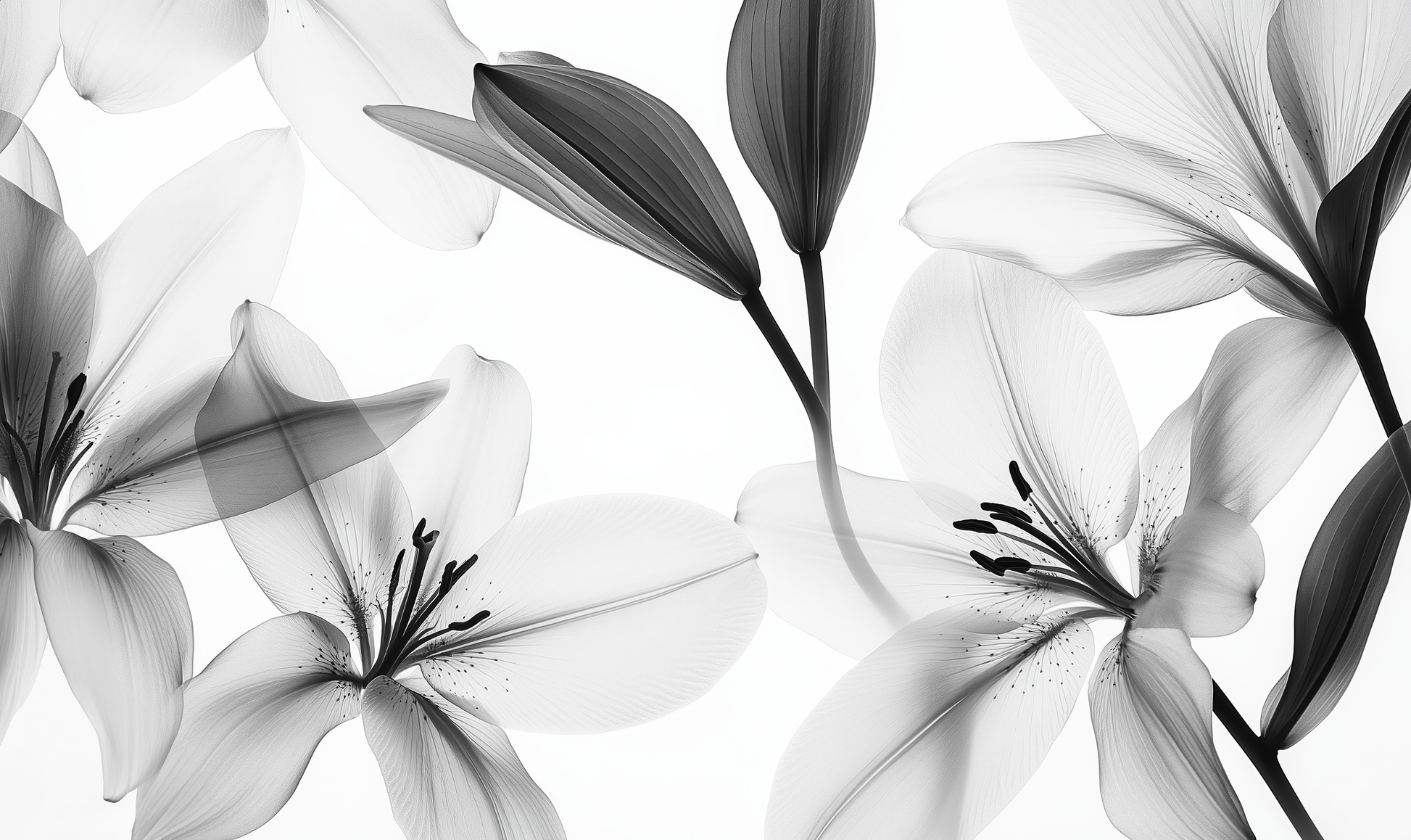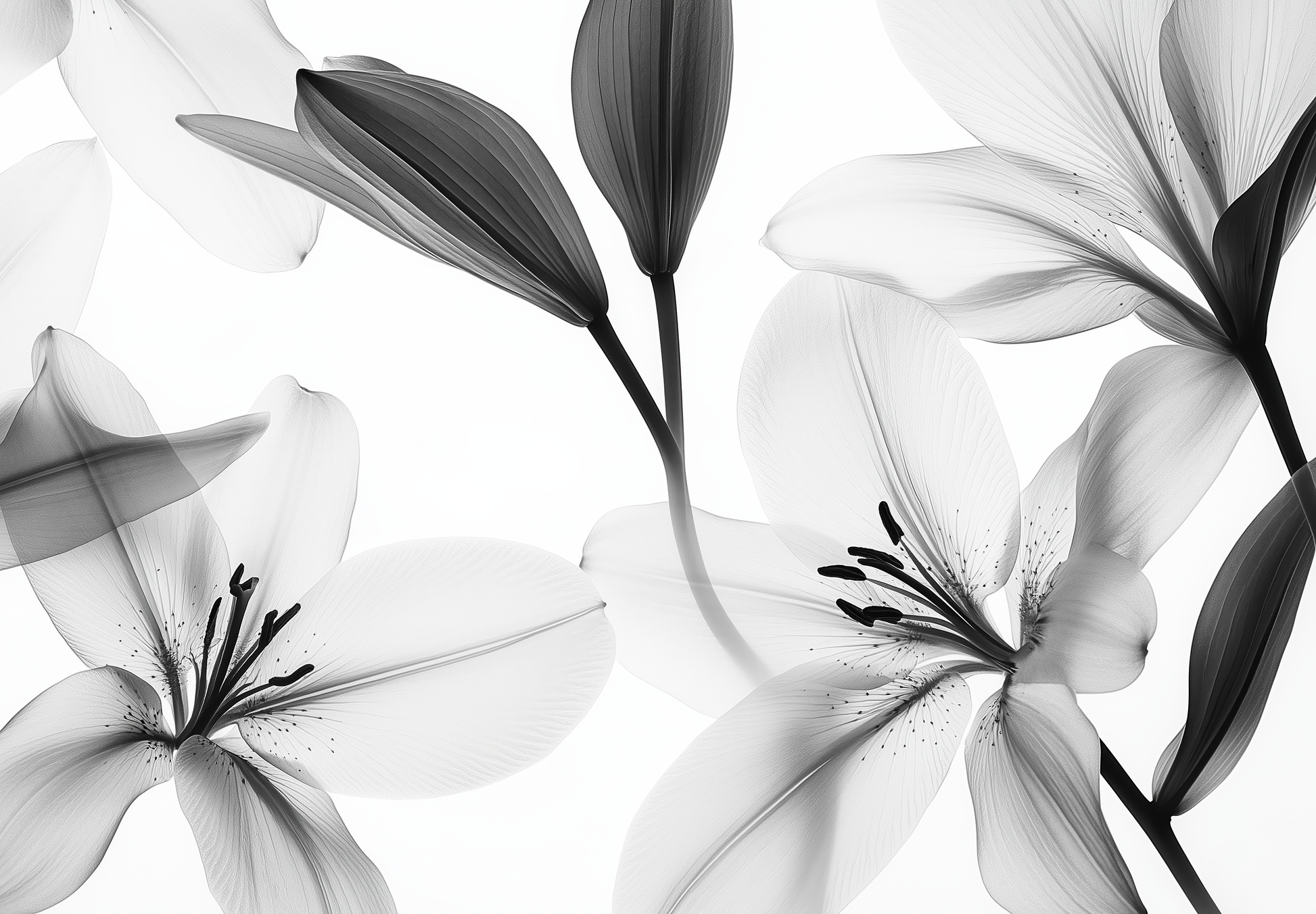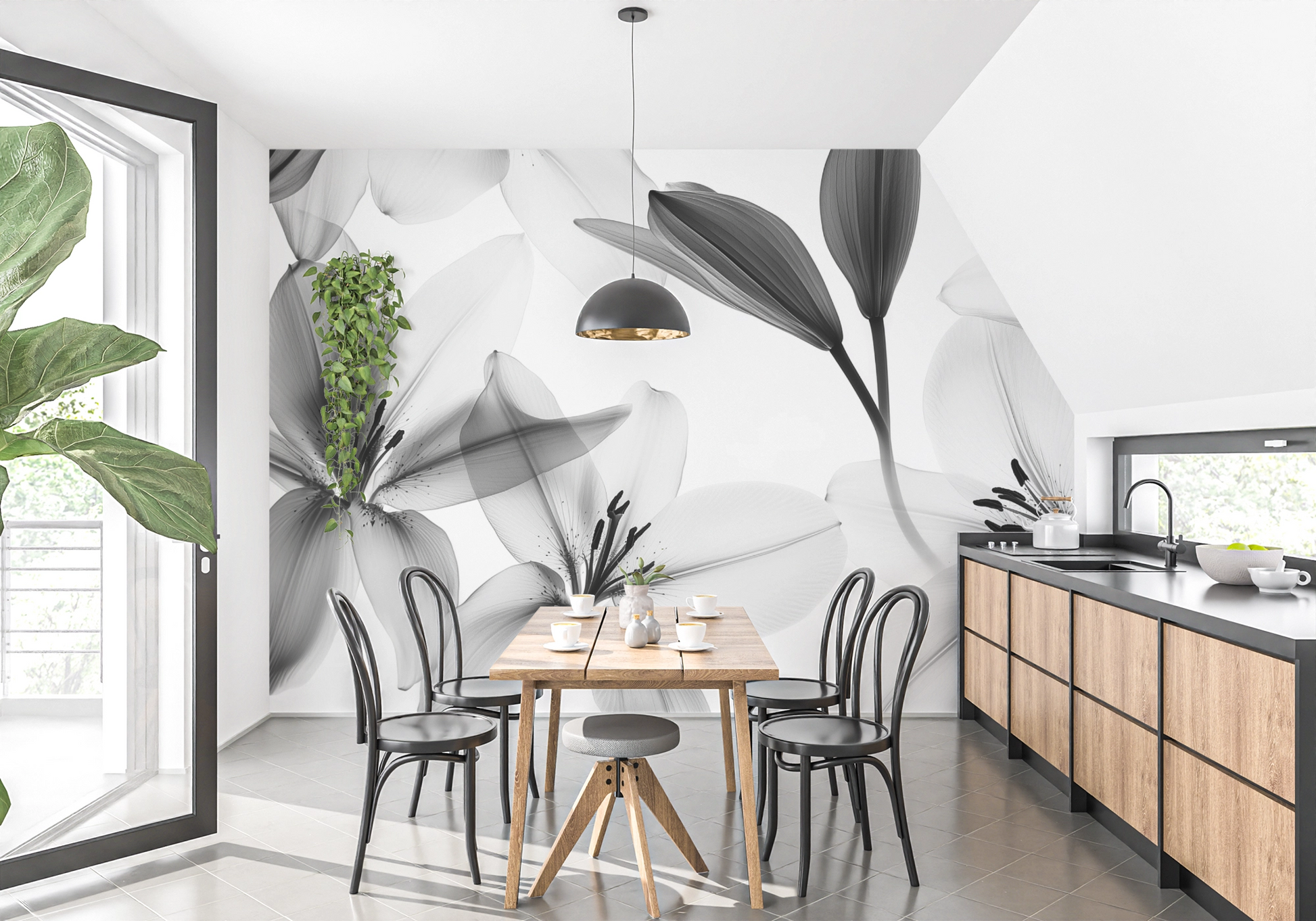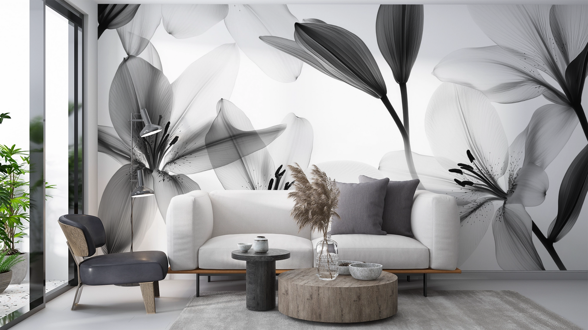 Lily Noir is a self-adhesive digital wallpaper that impresses with graphic clarity and floral lightness. Delicate lily blossoms in black and white, almost as if rendered in x-ray light, appear to float on the white background – reduced, poetic, timeless. The elegant composition combines understated aesthetics with artistic expression and is ideal for modern, monochrome interiors that emphasize stillness, space, and impact. Thanks to its self-adhesive backing, Lily Noir can be applied quickly and easily – no paste, no effort – perfect for design lovers with a sense of clean lines. Whether in the bedroom, hallway, or modern living area: this wallpaper brings subtle depth to bright rooms and makes minimalism tangible.
