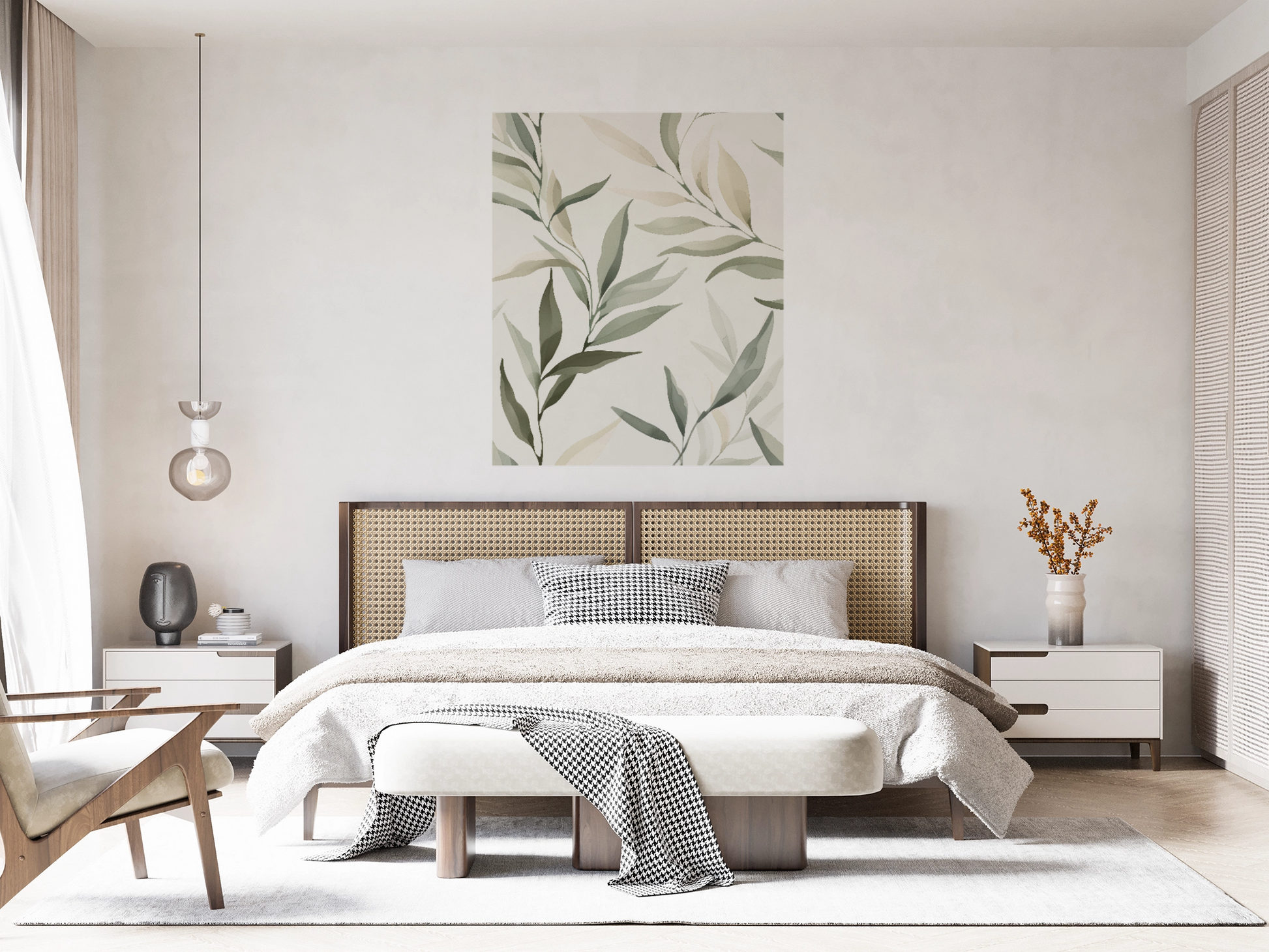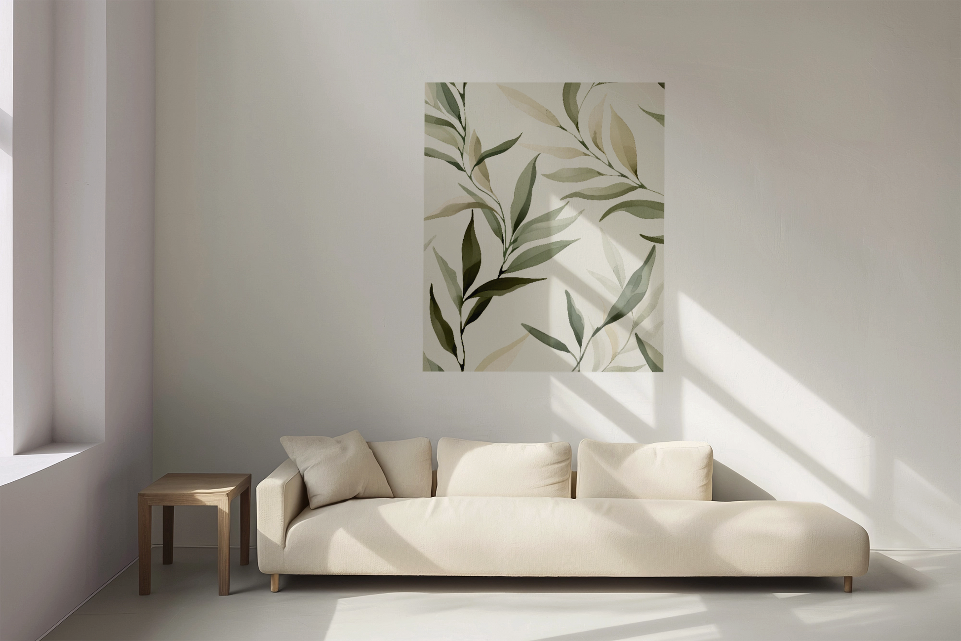 Linum Verde is a modern digital wallpaper design that exudes tranquility and elegance with its delicate, floral appearance. The fine, hand-drawn leaves in soft green tones appear to move weightlessly across the light background—almost as if carried by the wind. The soft, watercolor-like texture creates a calming depth that gently guides the eye and lends the room a sense of lightness and connection to nature. This motif is ideal for high-quality wall accents in living rooms, bedrooms, home spas, or entryways. Linum Verde unfolds its full effect especially on smaller surfaces—such as niches, wall panels, or above furniture—bringing structure and style to the room without being intrusive.