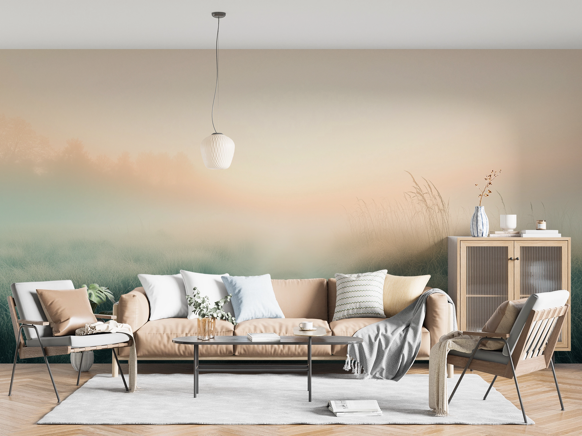 Morning Dew is more than just a wallpaper—it's a quiet greeting from nature. Inspired by the magic of a misty morning in the countryside, this design brings delicate grasses, subdued light, and tranquil colors into perfect harmony. The soft color scheme of taupe, misty white, and delicate sage green creates an atmosphere of calm, depth, and connection to nature. Ideal for nature lovers who long for expansiveness, softness, and grounding. Whether in the bedroom, meditation room, or living room— Morning Dew transforms any wall into a poetic landscape, giving the room peace, clarity, and natural elegance. A calming non-woven wallpaper with a grass motif and soft misty colors—perfect for natural, tranquil living spaces.