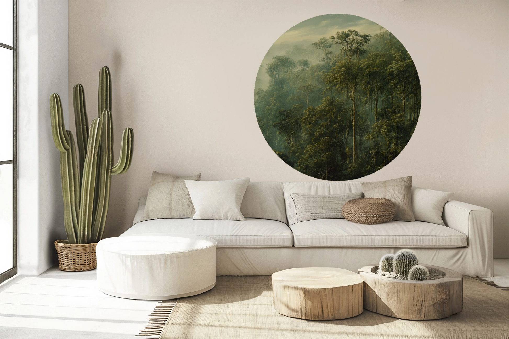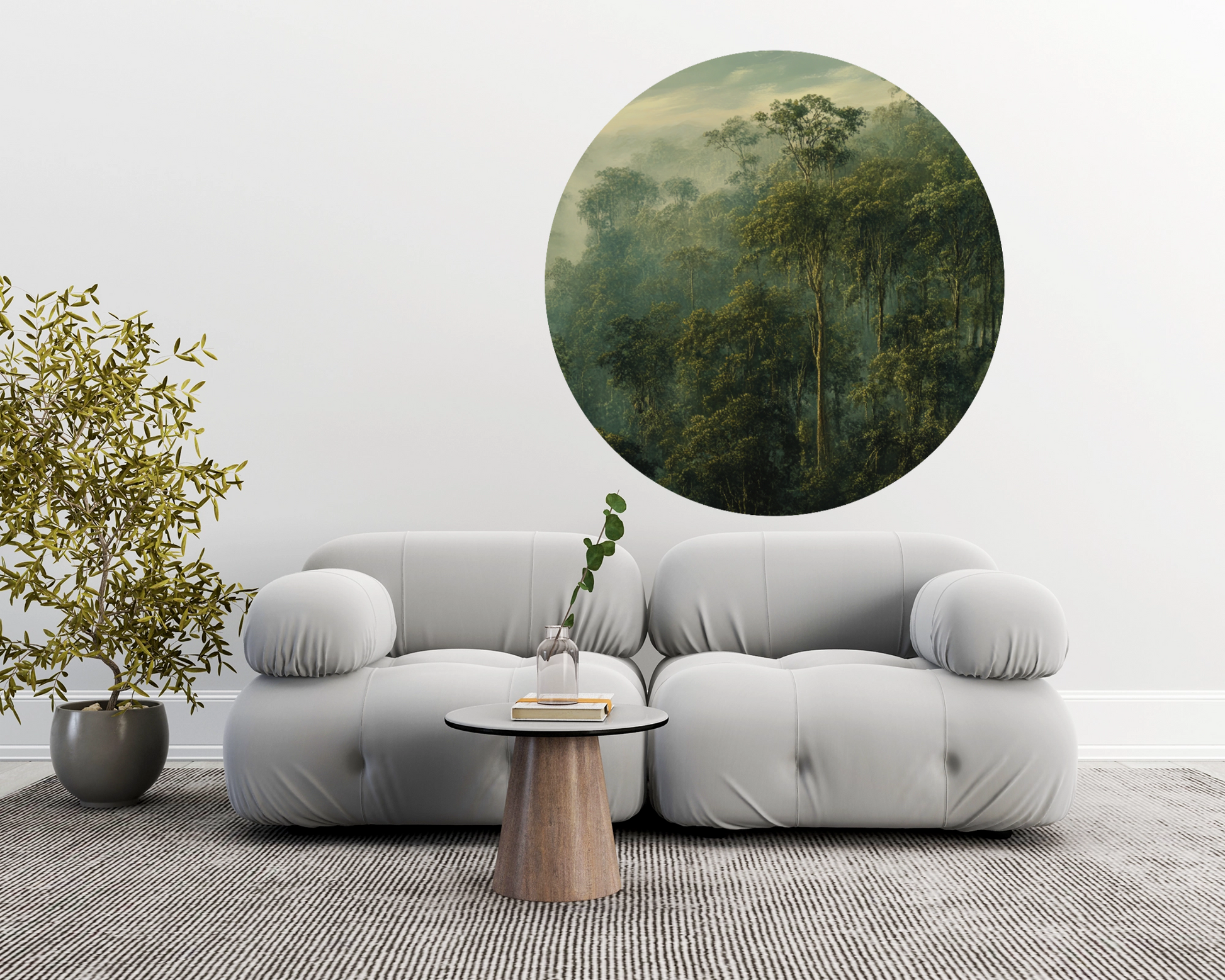 Morning dew in the jungle – Round wall sticker with misty jungle scene