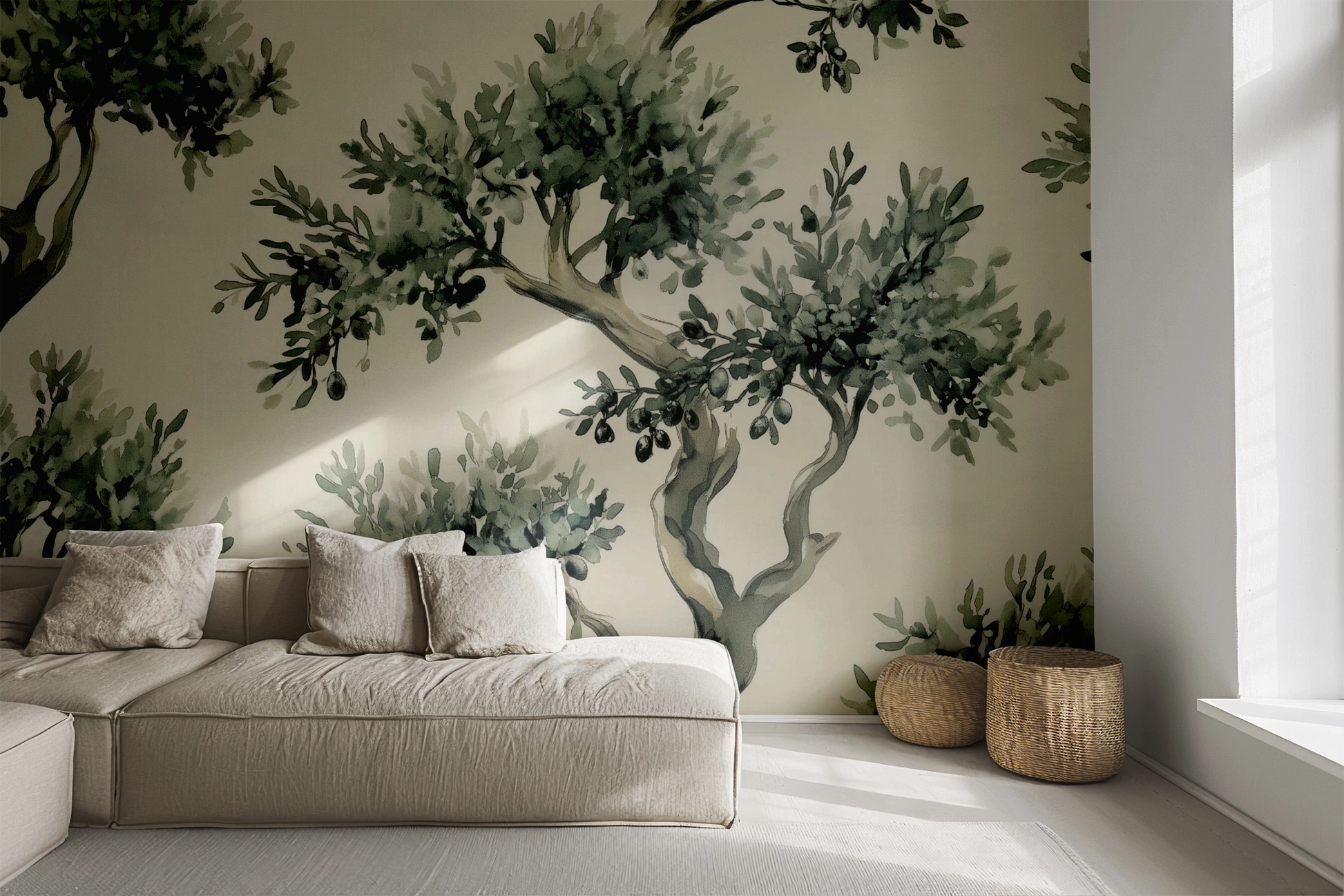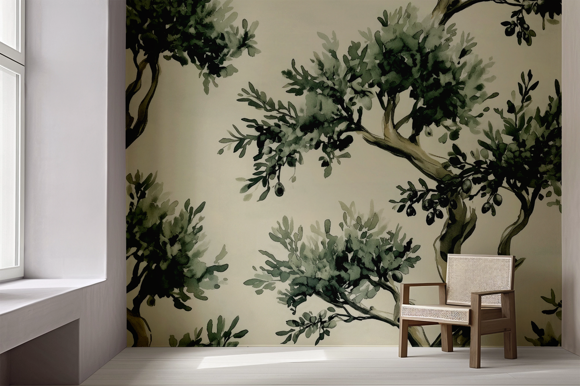 • Format: Self-adhesive digital wallpaper with olive branch illustration