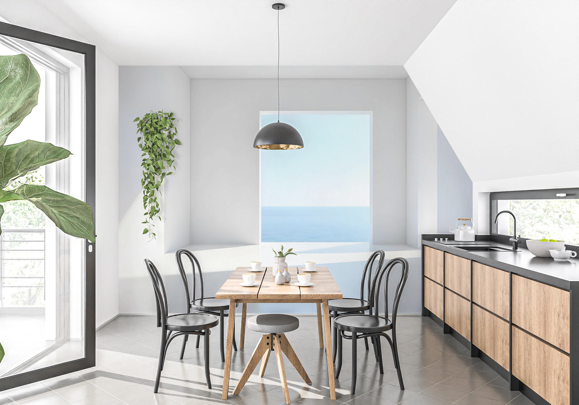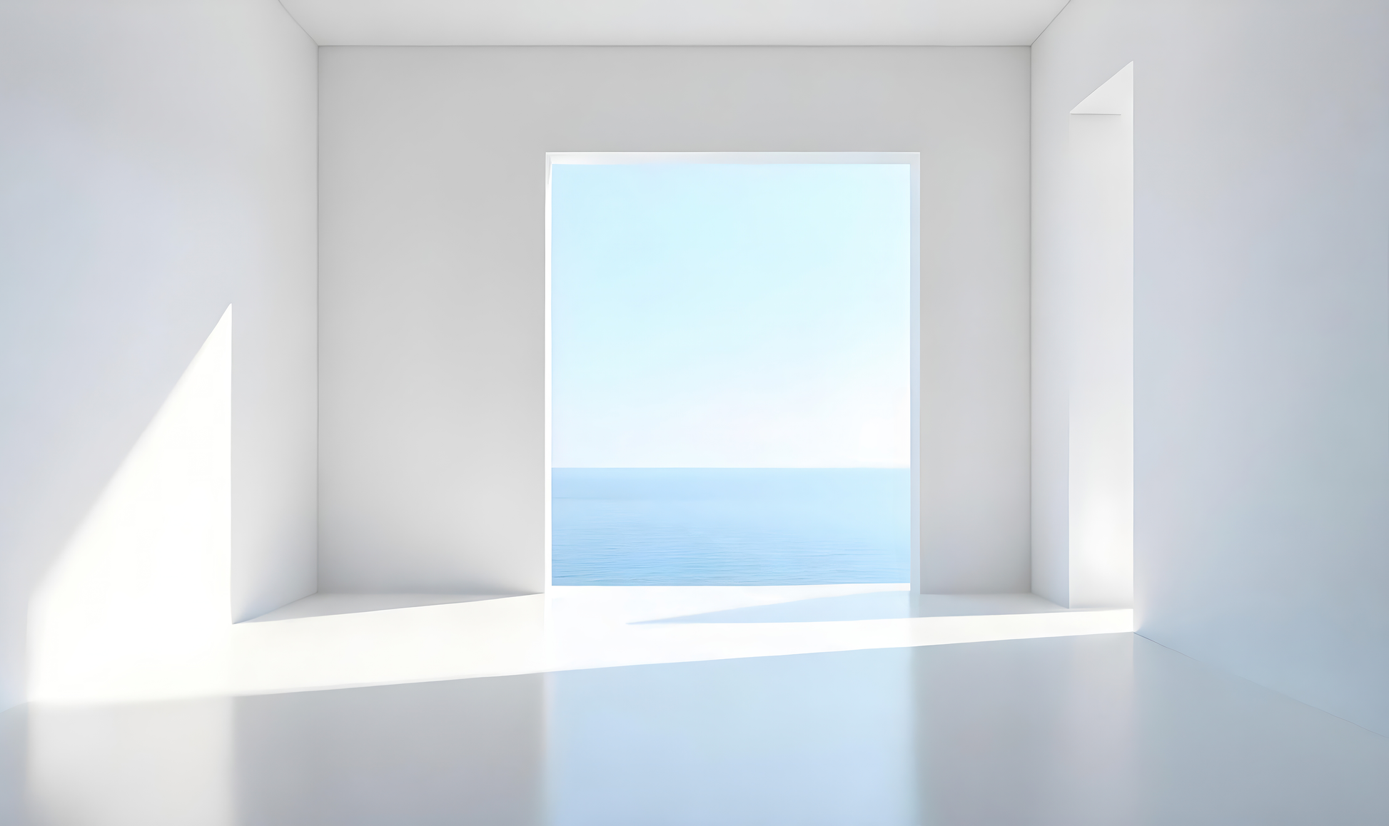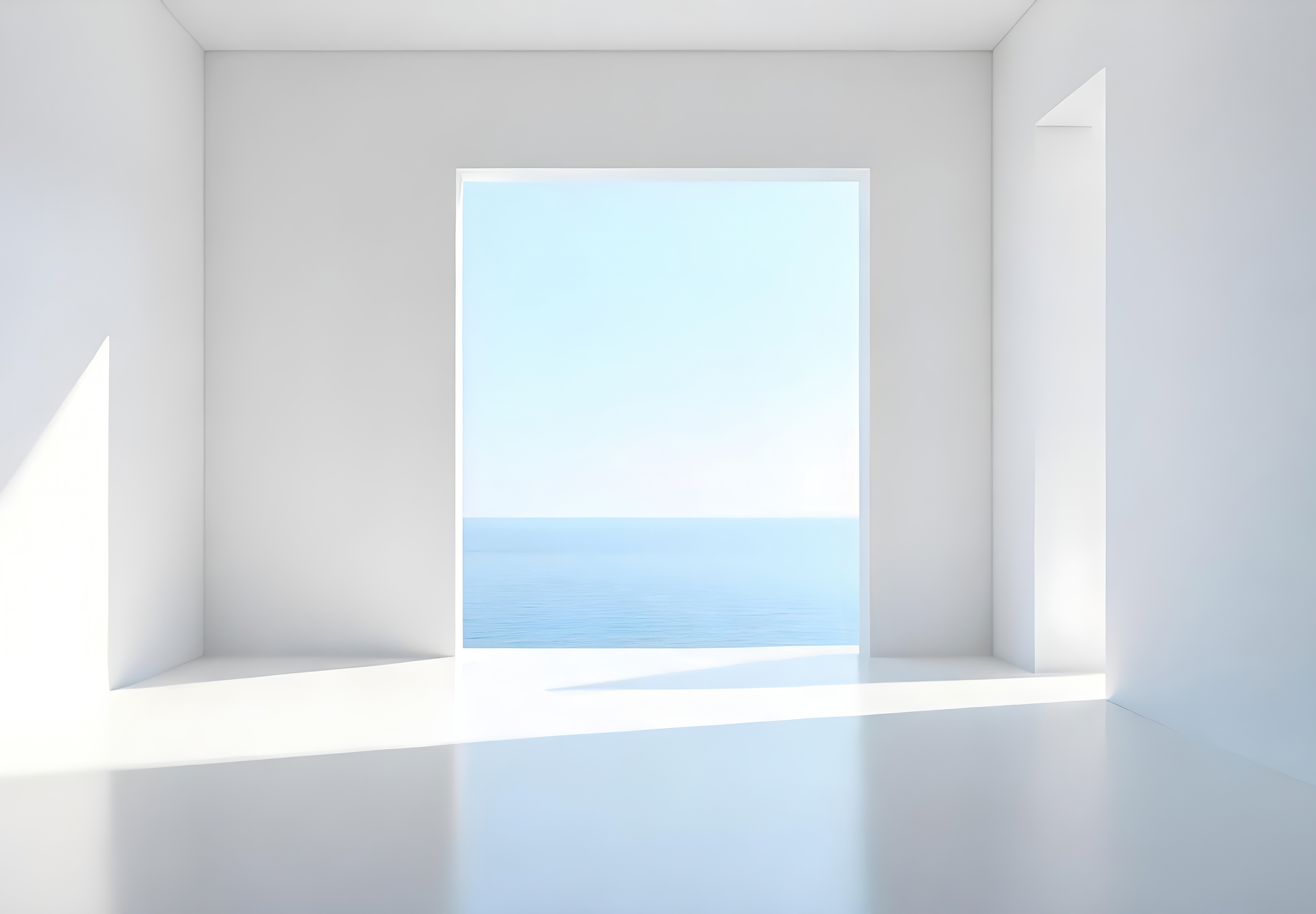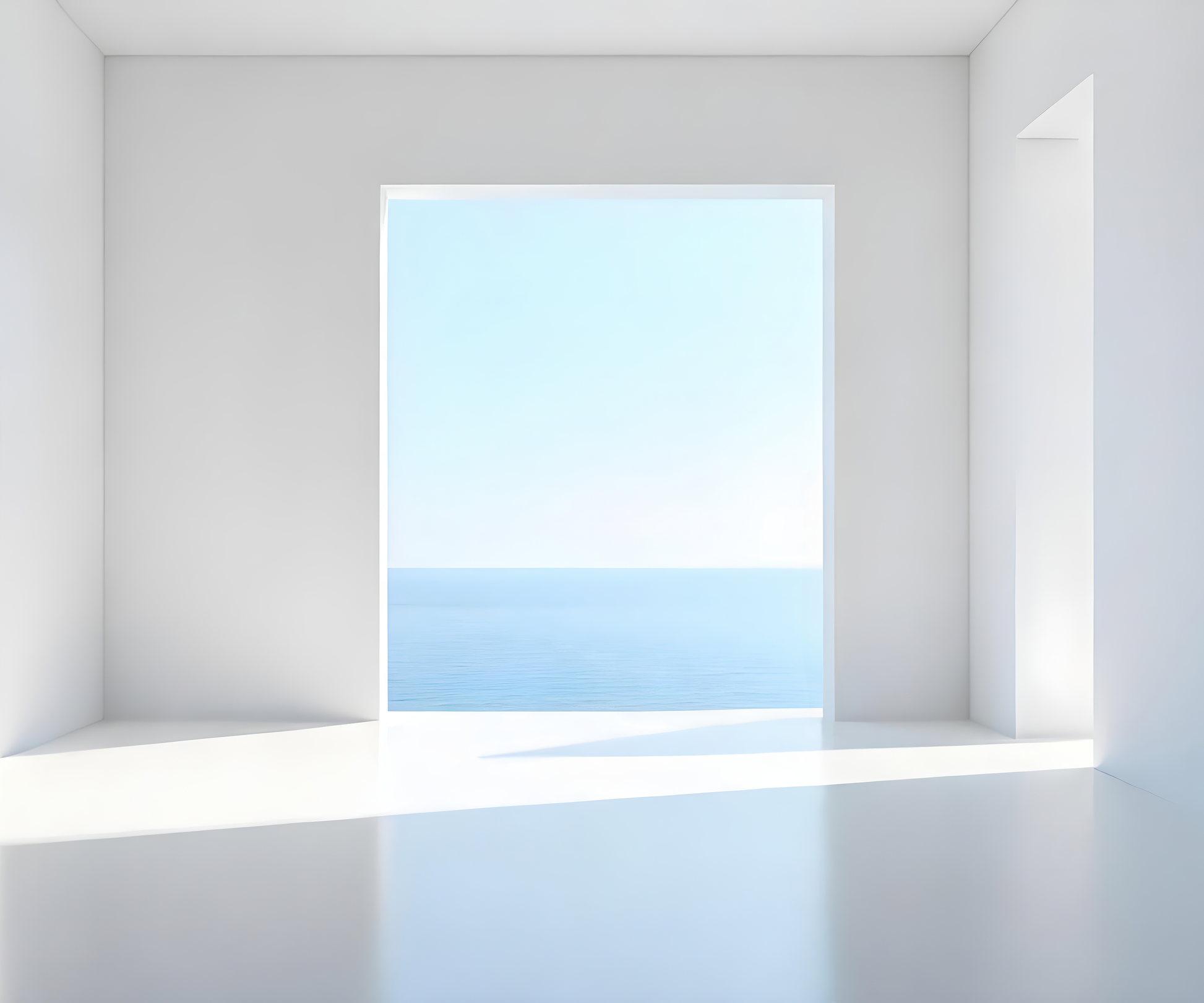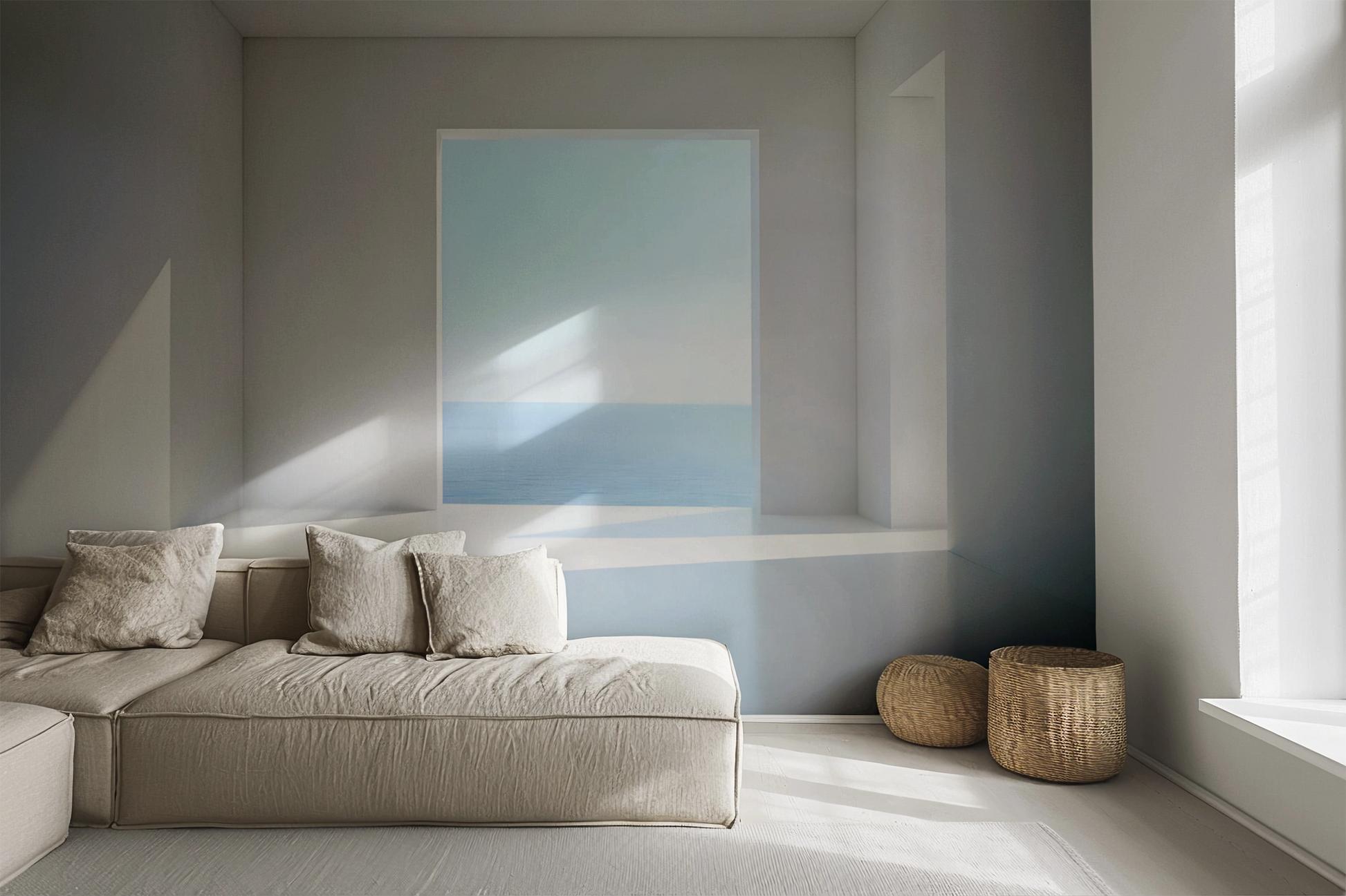 The self-adhesive photo wallpaper "Ocean Window" transforms any wall into a stylish panorama—like a window overlooking the open sea. Inspired by minimalist architecture and clean lines, this design brings calm, light, and spaciousness into the room. The motif is reminiscent of an abstract mural that opens the mind and visually enlarges spaces. The minimalist color scheme of white, light gray, and deep blue creates a calming atmosphere—ideal for modern living concepts, elegant workspaces, boutique hotels, or spa zones. As a custom wallpaper print, Ocean Window can be flexibly integrated into various interior styles, from purism to Japandi to soft minimalism.