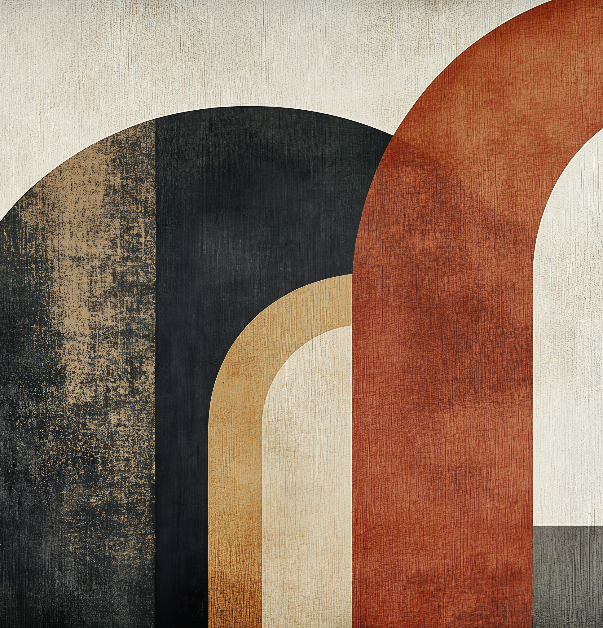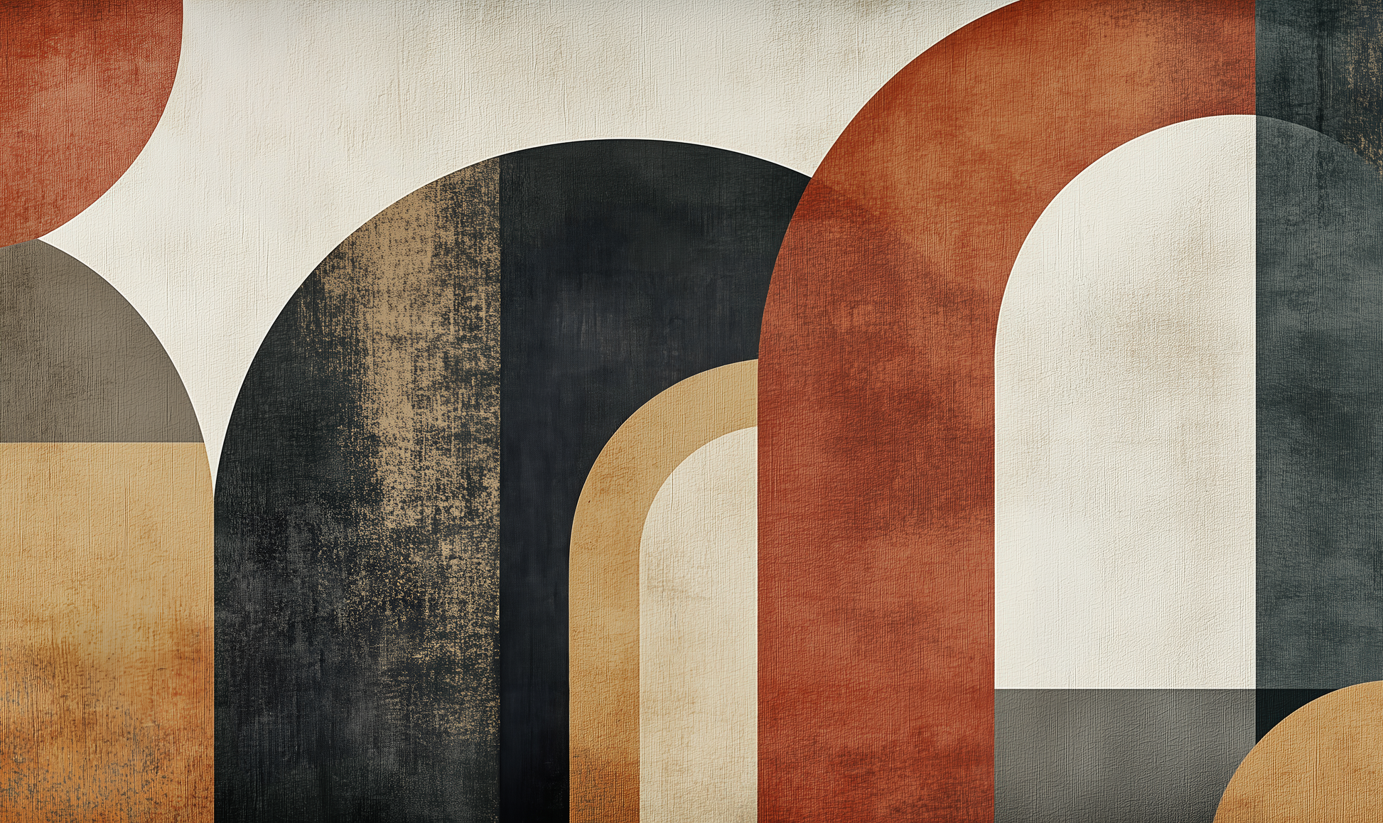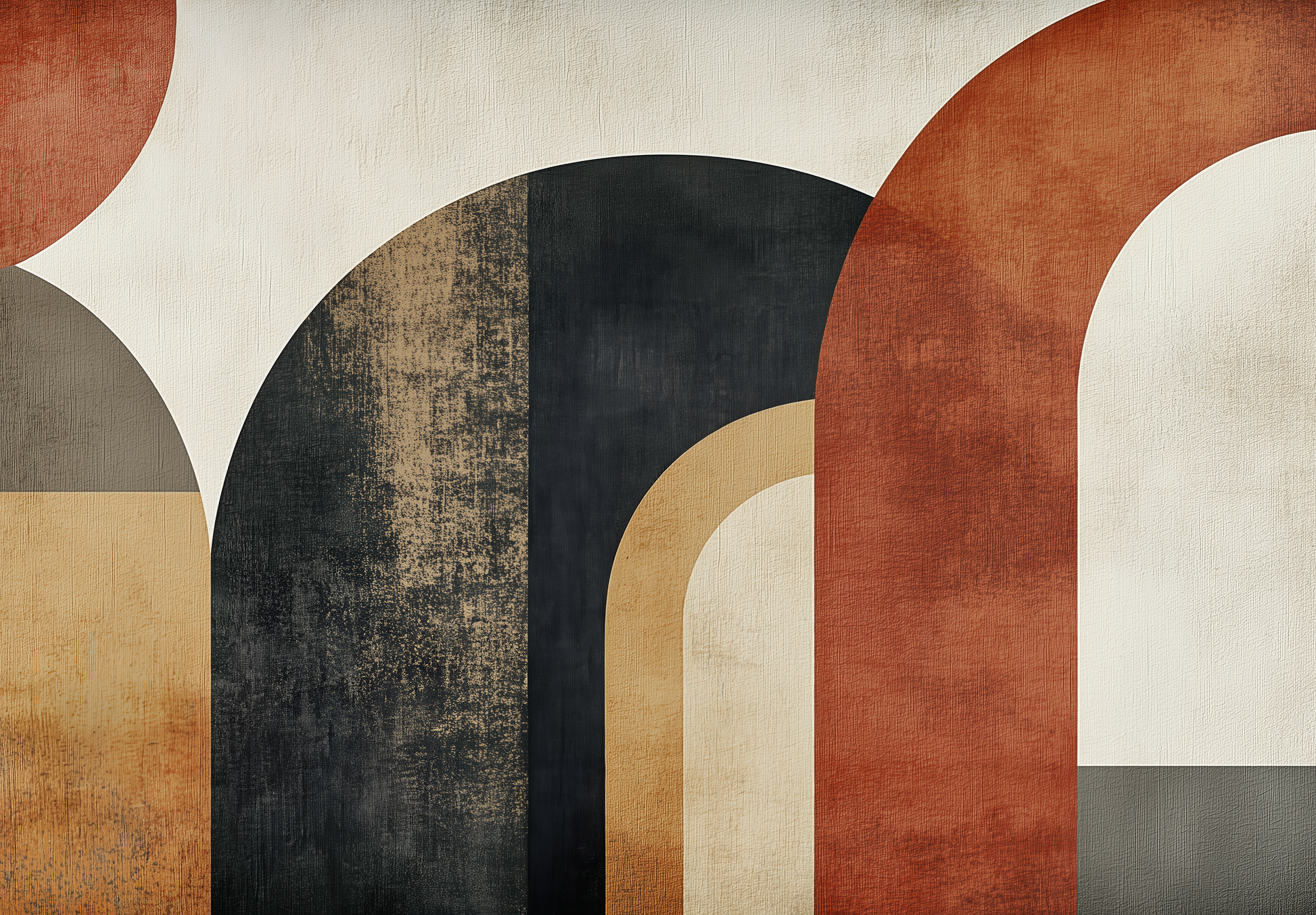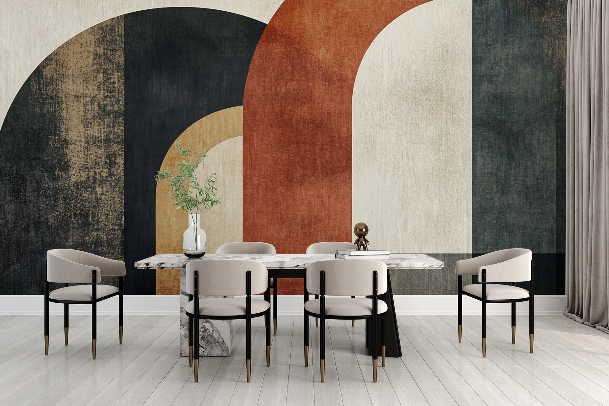 An expressive wall design with clean lines, bold arches and retro-inspired colors.