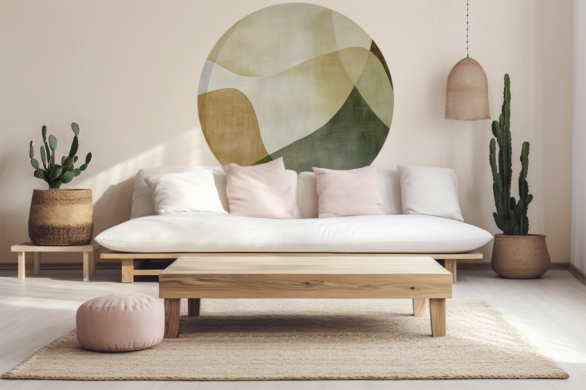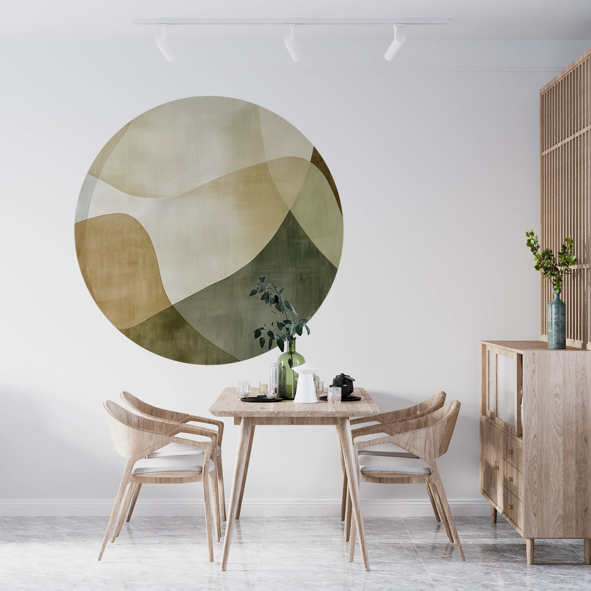 Desert Flow combines flowing lines with a warm, nature-inspired color scheme of beige, sand, ochre, and olive. The abstracted forms are reminiscent of dune landscapes and gentle elevations—a visual interplay of calm, structure, and natural depth. The subtle texture lends the mural a sophisticated, understated presence. This design is ideal for spaces that demand stylish serenity and an organic aesthetic—whether it's a living room, bedroom, office, or meditative retreat.