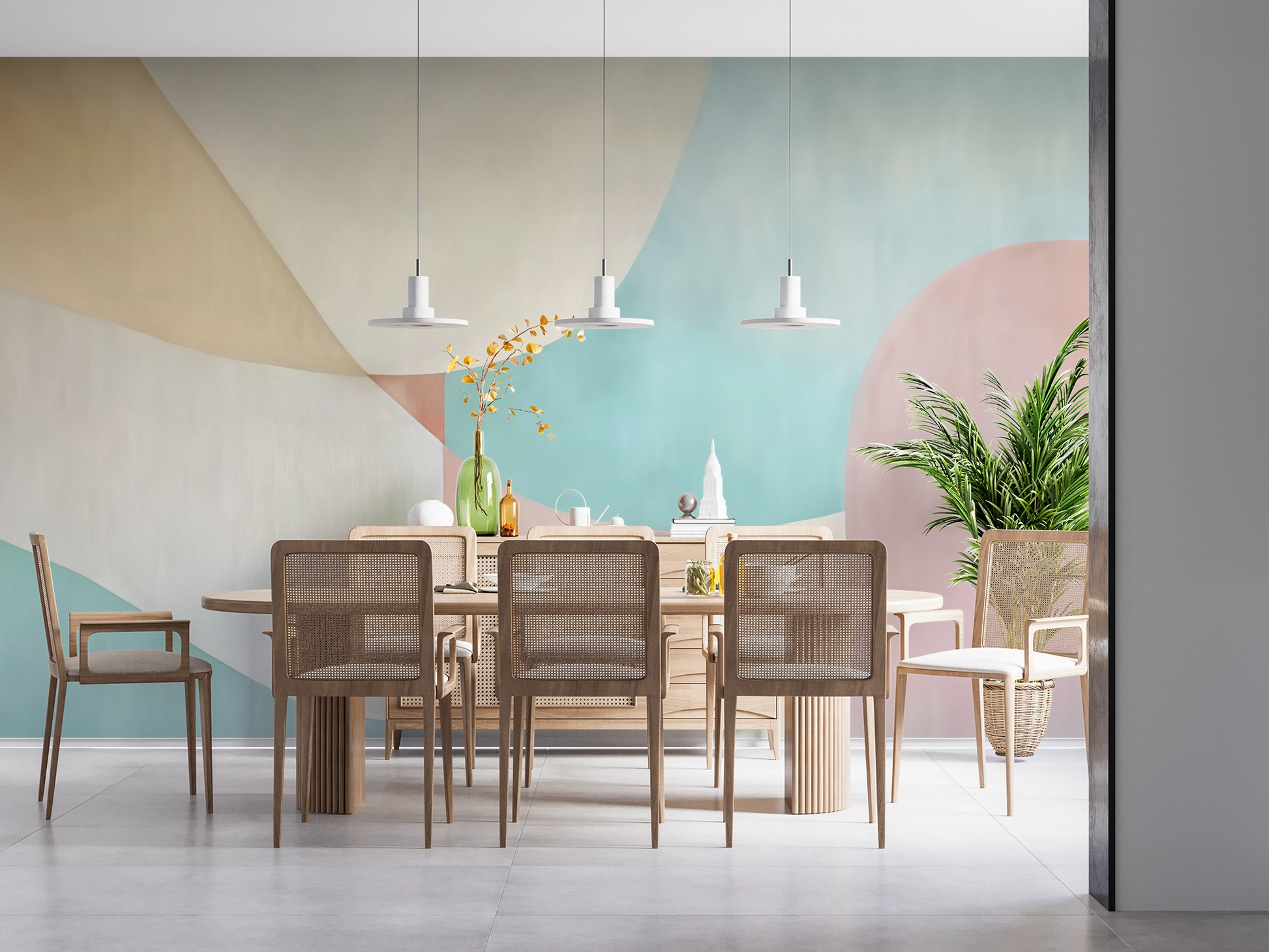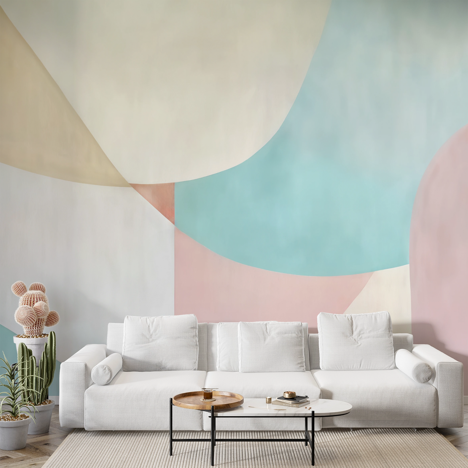 "Soft Geometry" is a modern digital wallpaper that conveys calm, spaciousness, and aesthetic balance. Soft, organic shapes blend into a harmonious composition in a delicate color palette of powder pink, turquoise, vanilla beige, and blush. The geometric surfaces appear soft and flowing—as if hand-drawn—and create a restrained yet stylish mural that leaves room for lightness. This self-adhesive wallpaper is ideal for anyone who wants to give their interior a clear, minimalist, yet warm radiance. Whether in the living room, bedroom, hallway, or studio— Soft Geometry acts as a subtle eye-catcher and brings visual calm to modern spaces.