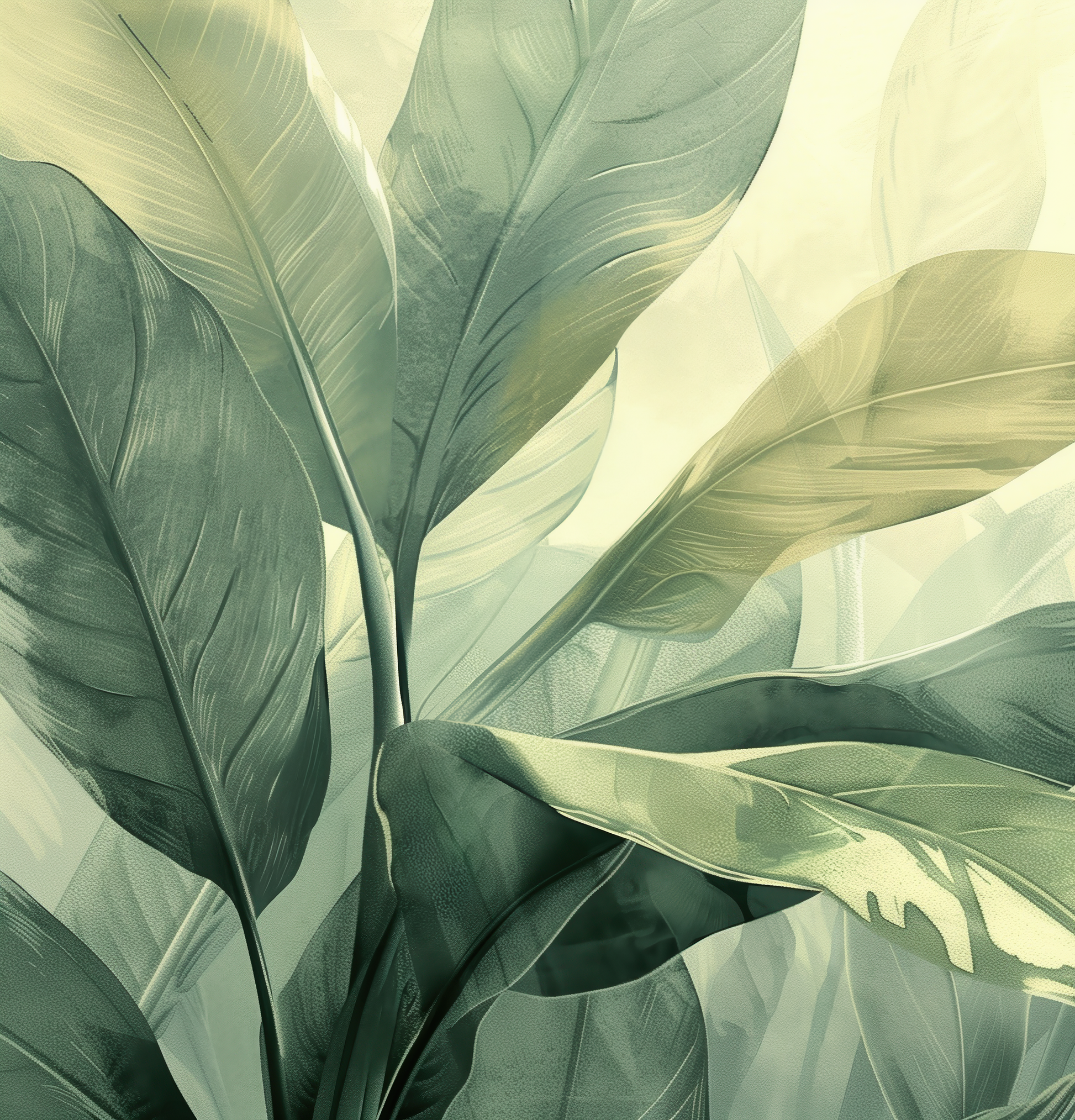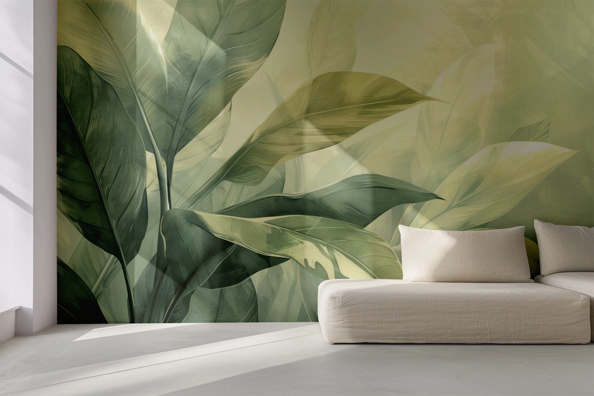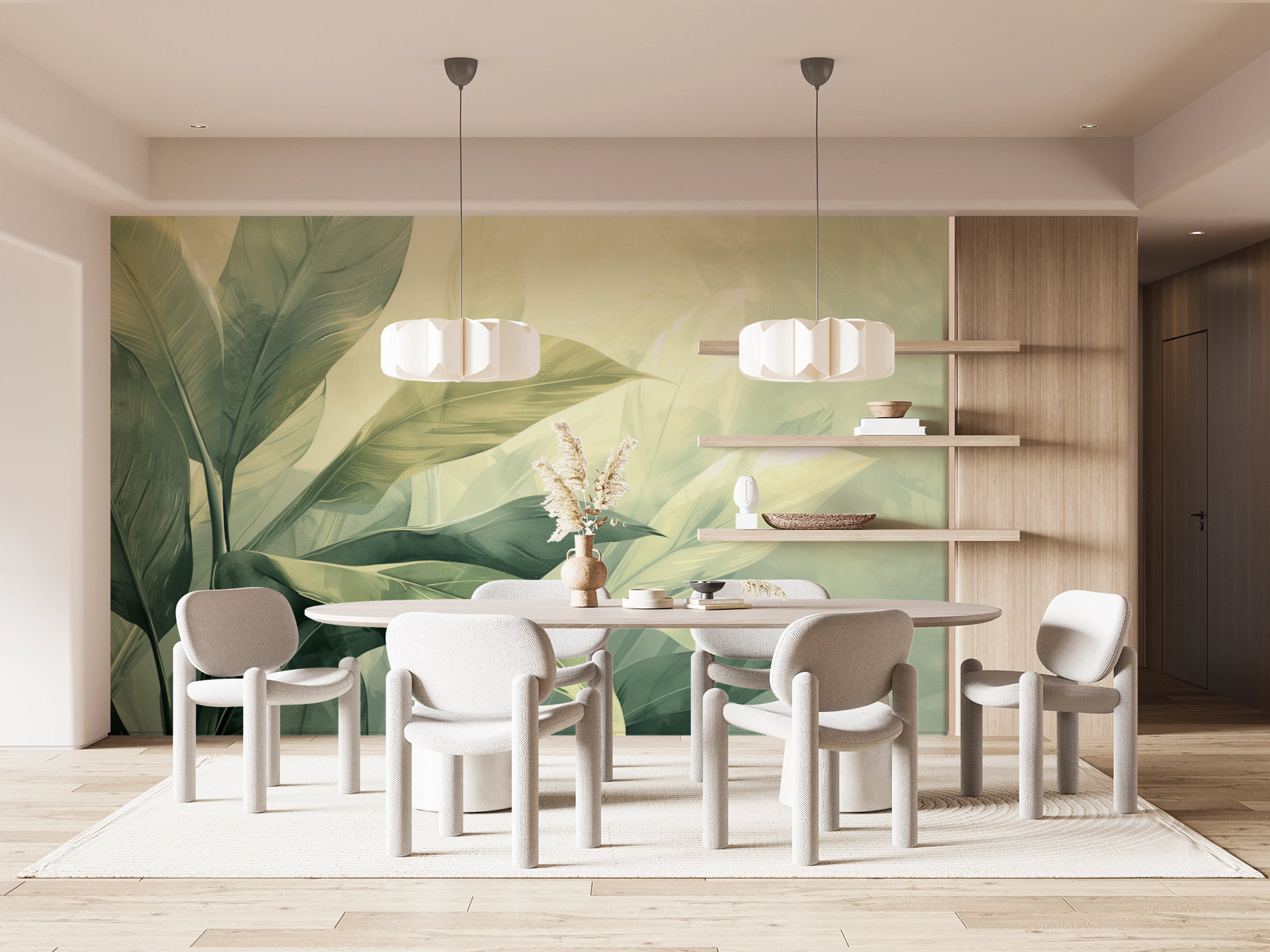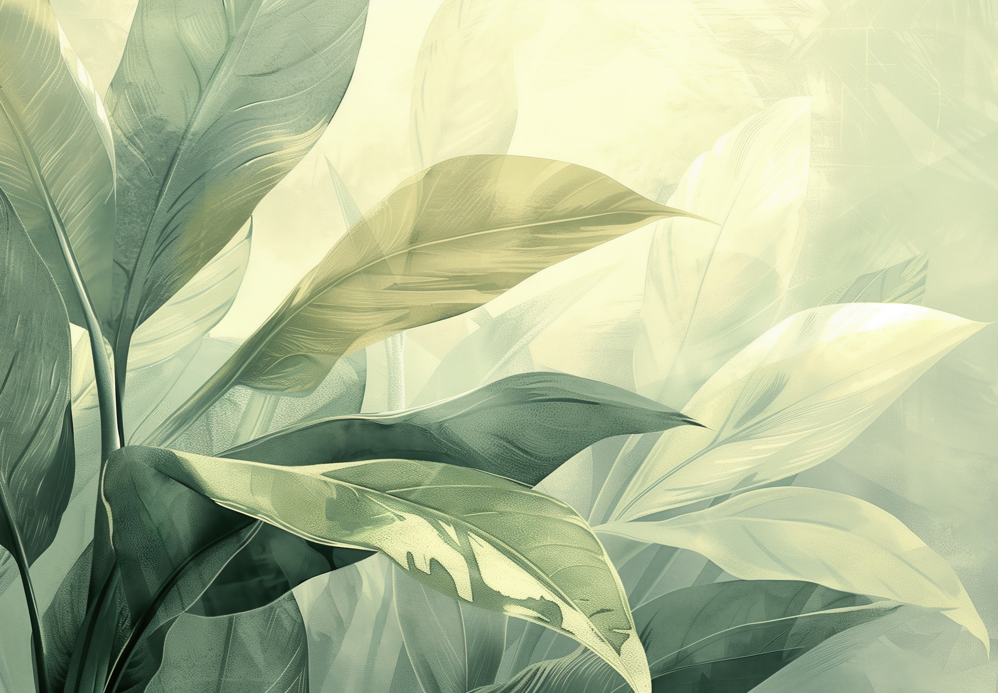 Immerse yourself in a sanctuary of gentle nature and stylish elegance: Botanical Calm features photorealistic leaves in harmonious shades of green and cream, draped across the wall like a whispering pattern. The delicate leaf structures and soft light gradients create a calm, vibrant interplay of naturalness and design clarity. This digital wallpaper combines botanical motifs with modern minimalism—ideal for spacious panoramic walls, open-plan living areas, or stylish retreats. The composition brings subtle freshness and a pleasing depth to the room—perfect for interiors that combine naturalness with understated luxury aesthetics. Modern digital wallpaper with photorealistic leaves in green and cream—stylish, calming, and perfect for nature-inspired living spaces.