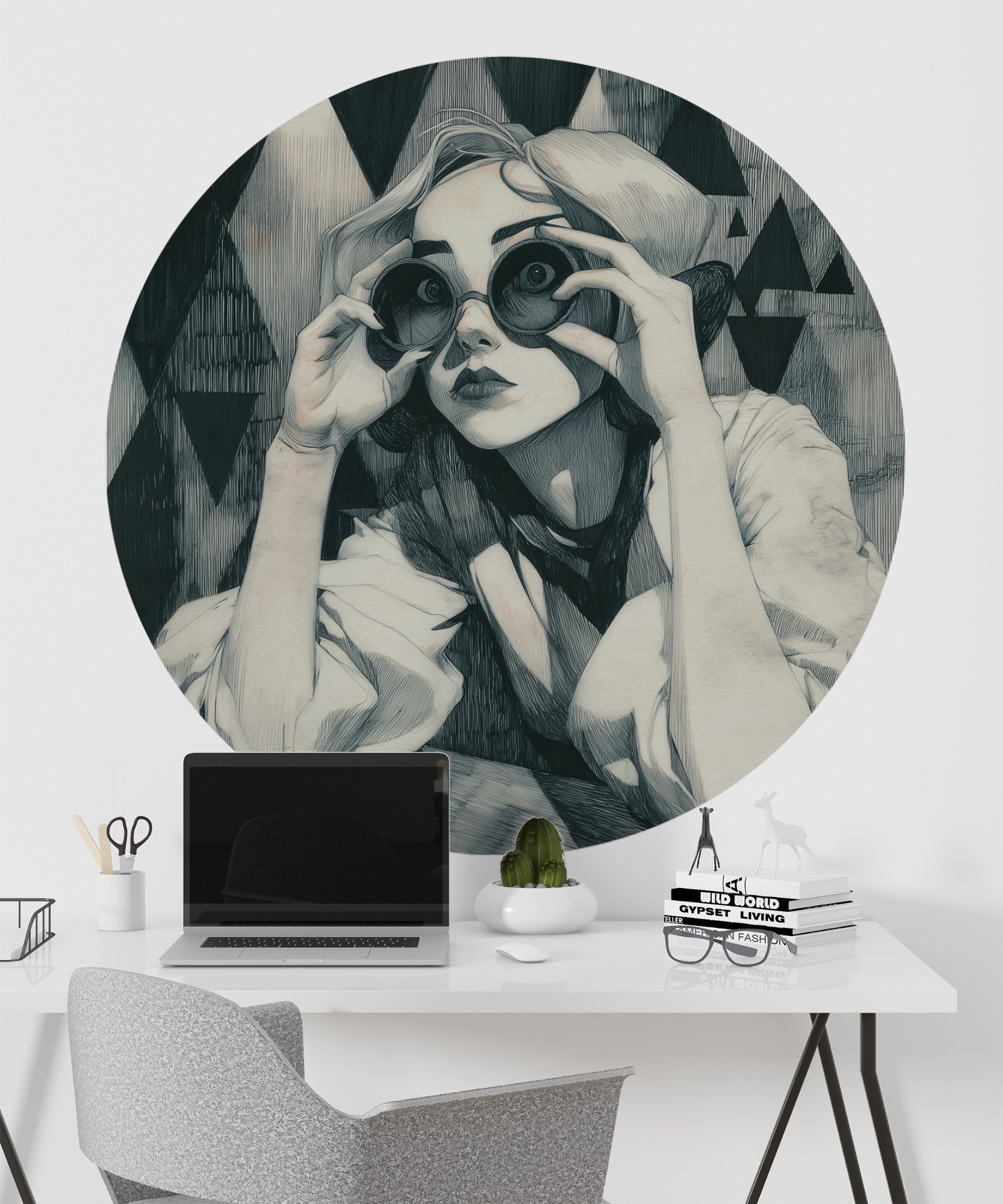 Ideal für minimalistische Interiors, kreative Arbeitsbereiche oder moderne Wohnkonzepte, die klare Formen und grafische Wandgestaltung schätzen. Dank der selbstklebenden Rückseite lässt sich der Wandsticker einfach anbringen und bei Bedarf rückstandsfrei entfernen.